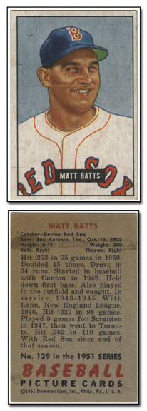 You have: 1951 Bowman Baseball Card #129 Matt Batts