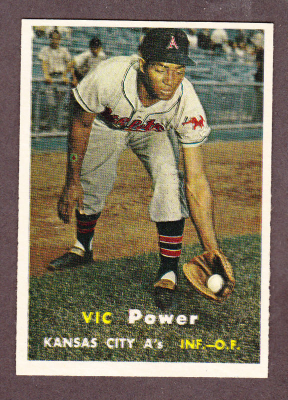 October 28, 2025 - For 1957, Topps reduced the size of its cards to the now-standard 2-1/2" by 3-1/2."  Set size was increased to 407 cards.  Another change came in the form of the use of real color photographs as opposed to the hand-colored black and whites of previous years.  For the first time since 1954, there are also cards with more than one player.  The two, "Dodger Sluggers" and "Yankees Power Hitters" began a trend toward the increased use of multiple-player cards.  Another first-time innovation, found on the backs, is complete player statistics.  The scarce cards in the set are not the highest numbers, but rather numbers 265-352.  Four unnumbered checklist cards were issued along with the set.  They are quite expensive and are not included in the complete set prices quoted below.
