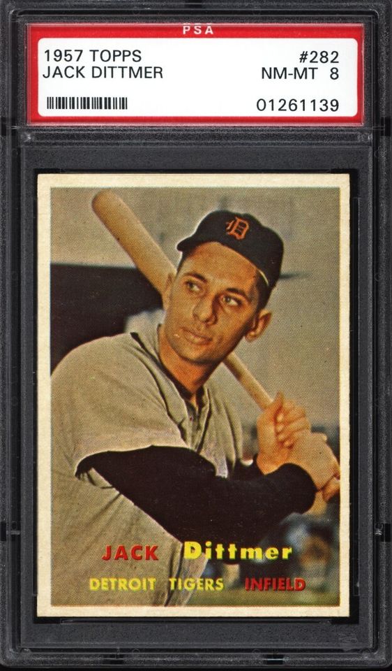 You have: 1957 Topps Baseball #282 Jack Dittmer (DOUBLE-PRINT) PSA NM-MT 8