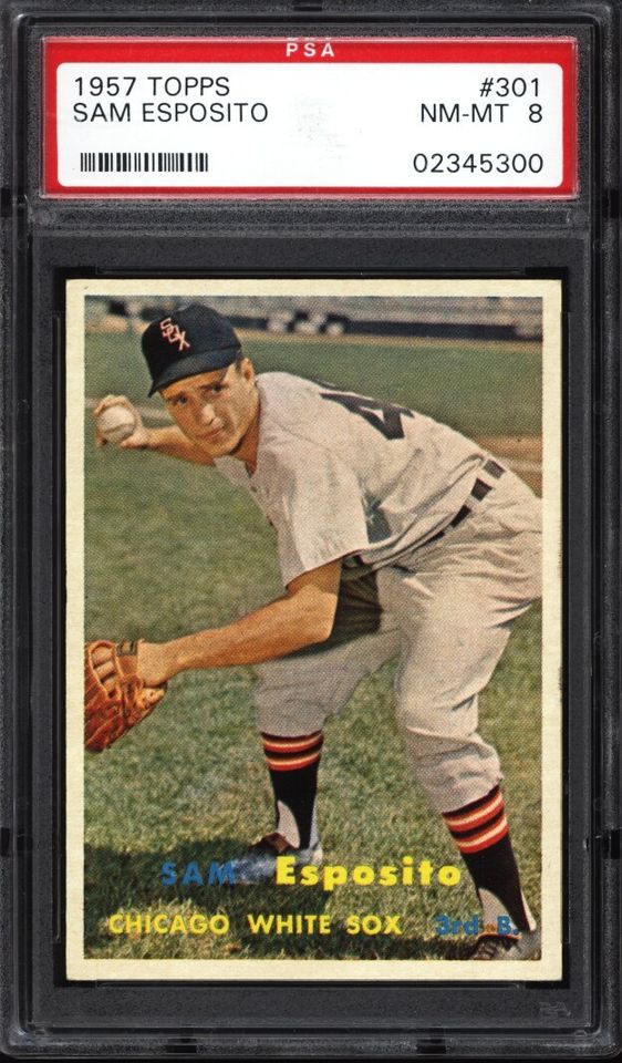You have: 1957 Topps Baseball #301 Sammy Esposito (DOUBLE-PRINT) PSA NM-MT 8