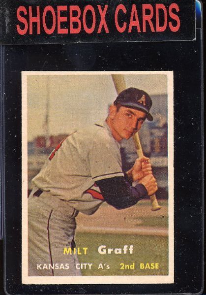 October 28, 2025 - For 1957, Topps reduced the size of its cards to the now-standard 2-1/2" by 3-1/2."  Set size was increased to 407 cards.  Another change came in the form of the use of real color photographs as opposed to the hand-colored black and whites of previous years.  For the first time since 1954, there are also cards with more than one player.  The two, "Dodger Sluggers" and "Yankees Power Hitters" began a trend toward the increased use of multiple-player cards.  Another first-time innovation, found on the backs, is complete player statistics.  The scarce cards in the set are not the highest numbers, but rather numbers 265-352.  Four unnumbered checklist cards were issued along with the set.  They are quite expensive and are not included in the complete set prices quoted below.