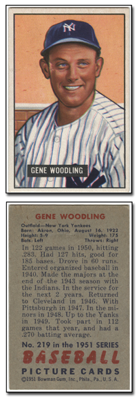 You have: 1951 Bowman Baseball Card #219 Gene Woodling (Rookie)