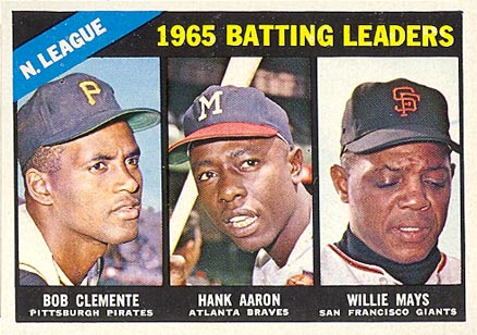1966 Topps Baseball Card #215 NL Batting Leaders (Clemente,Aaron,Mays)