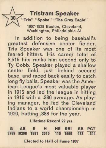 1961 Golden Press Baseball Card #30 Tris Speaker (Hall of Fame)