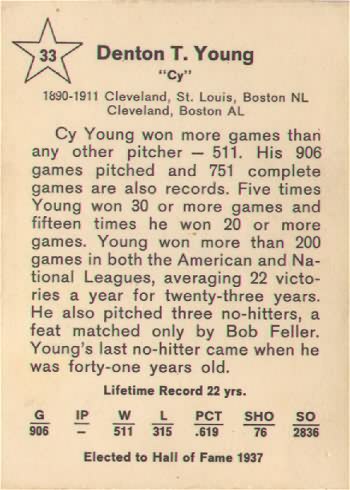 You have: 1961 Golden Press Baseball Card #33 Cy Young (Hall of Fame)