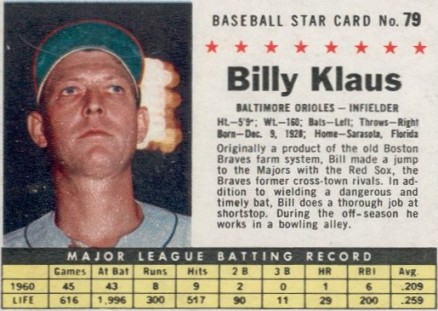 You have: 1961 Post Cereal Box Baseball Card #79 Billy Klaus (box)
