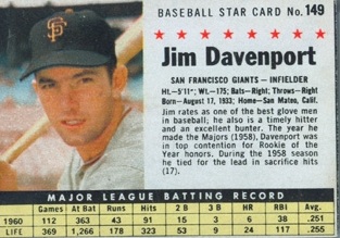 You have: 1961 Post Cereal Box Baseball Card #149b Jim Davenport (company)