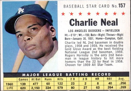 You have: 1961 Post Cereal Box Baseball Card #157b Charlie Neal ( company)