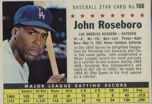 You have: 1961 Post Cereal Box Baseball Card #166a John Roseboro (box)