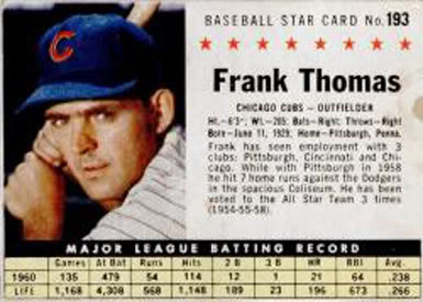 You have: 1961 Post Cereal Box Baseball Card #193a Frank Thomas (box)