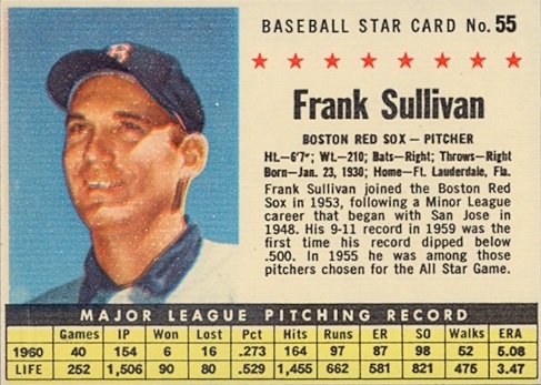 1961 Post Cereal Box Baseball Card #55a Frank Sullivan (box, Red Sox)
