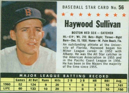 You have: 1961 Post Cereal Box Baseball Card #56a Haywood Sullivan (box)