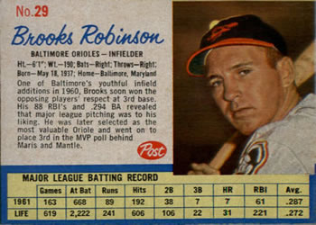 You have: 1962 Post Cereal Box Baseball Card #29 Brooks Robinson (Hall of Fame)