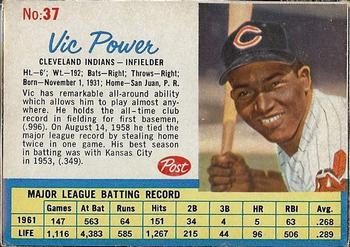 1962 Post Cereal Box Baseball Card #37 Vic Power