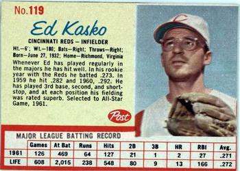 1962 Post Cereal Box Baseball Card #119 Ed Kasko