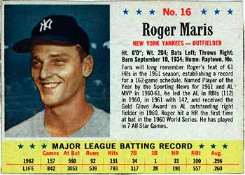 You have: 1963 Post Cereal Baseball Card #16 Roger Maris