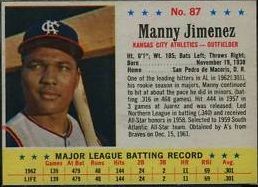 1963 Post Cereal Baseball Card #87 Manny Jimenez