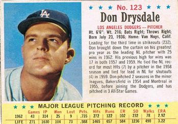 1963 Post Cereal Baseball Card #123 Don Drysdale (Hall of Fame)