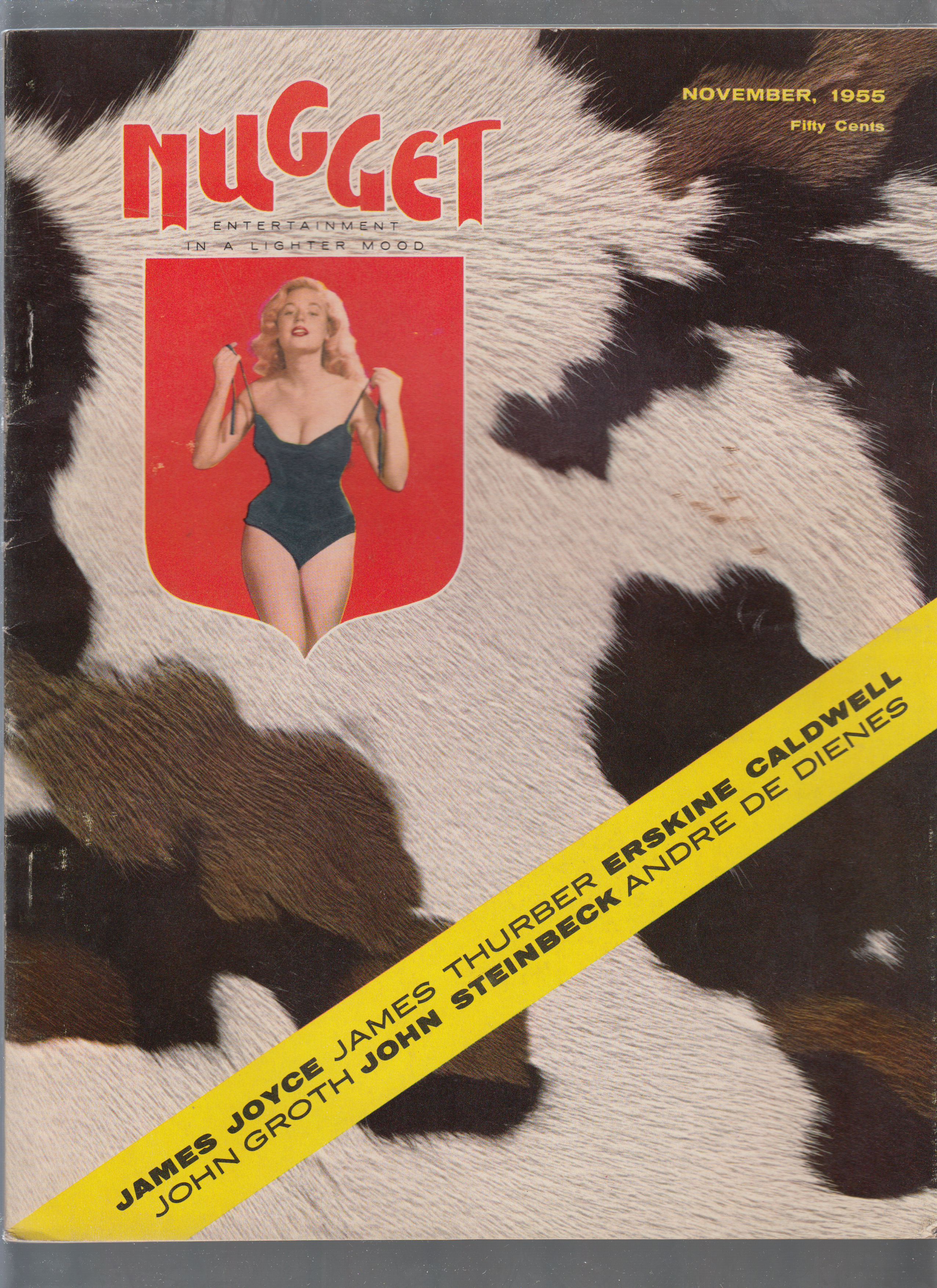 November 18, 2025 - 86 pages including wraps. Inspired by the success of Playboy (first issue December, 1953), Nugget was launched with this November, 1955 issue. Each had lots of photos, a wide variety of features, well-known contributors, was printed on good quality paper, and sold for the same price - 50 cents an issue. Includes pictorial articles of cover girl Miss Nugget Betty Brosmer and studies of anonymous models by Andre de Diennes and Keith Bernard. An extensive report on hot rod cars in the U.S. is a feature article. There is fiction by John Steinbeck, Lawrence Blochman, Erskine Caldwell, Helen French, Budd Schulberg, John Silletto, Shelby Foote, James Joyce, Giovanni Guareschi, and O. Henry.