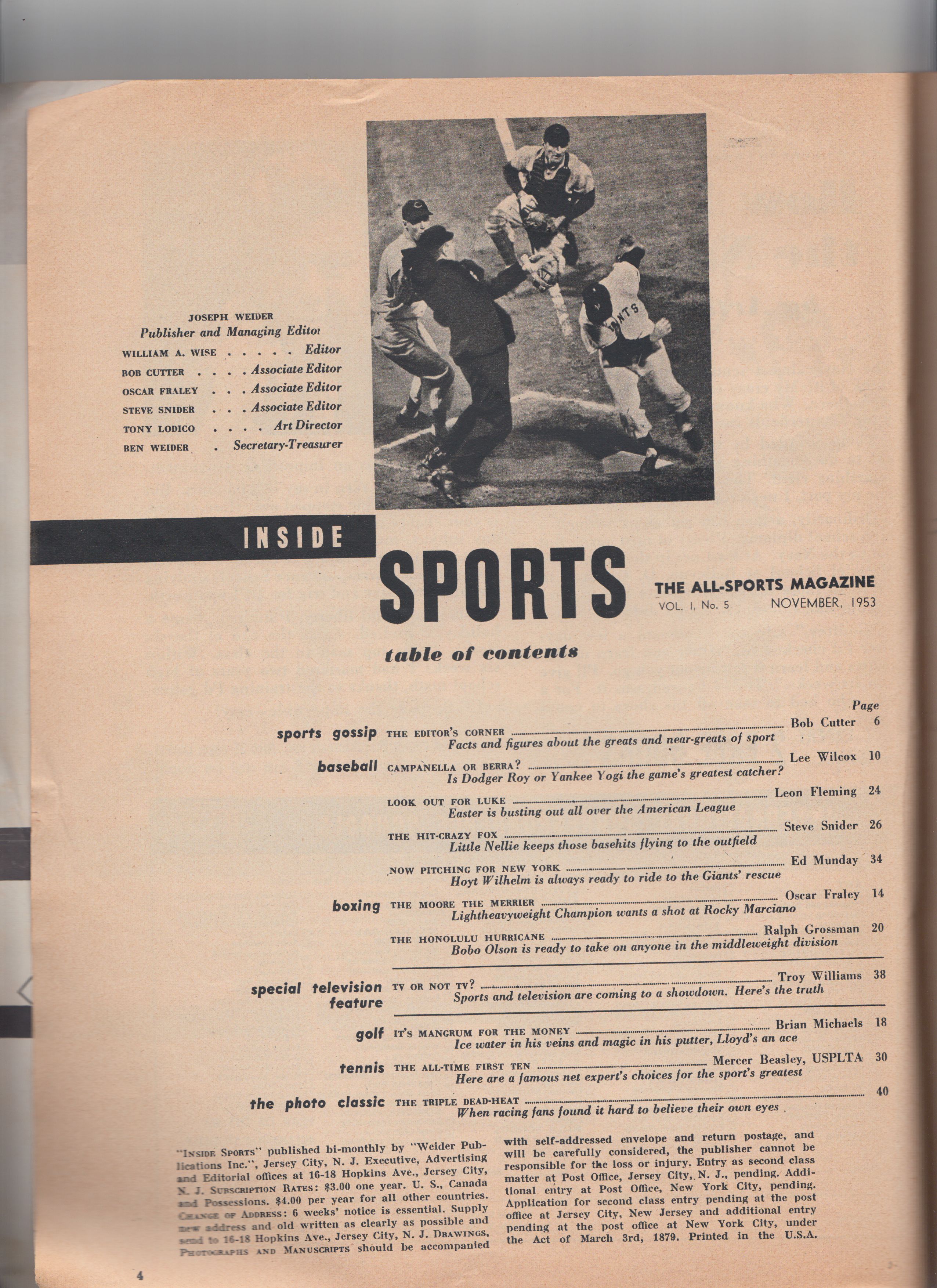 You have: INSIDE SPORTS Vol. 1 No. 5 (Weider Publications, Inc., November, 1953)