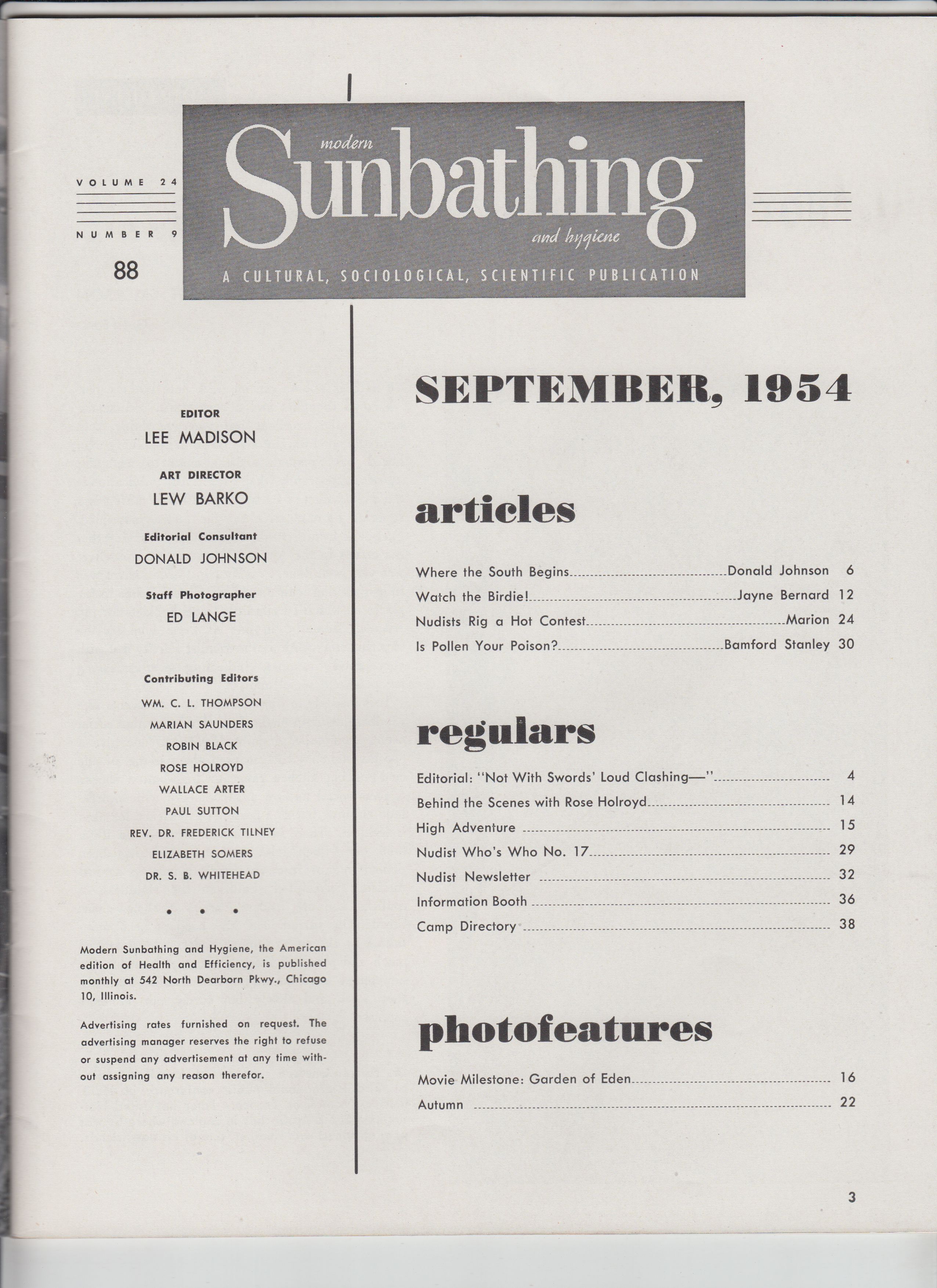 MODERN SUNBATHING AND HYGIENE Vol. 24 #9 (, September, 1954)