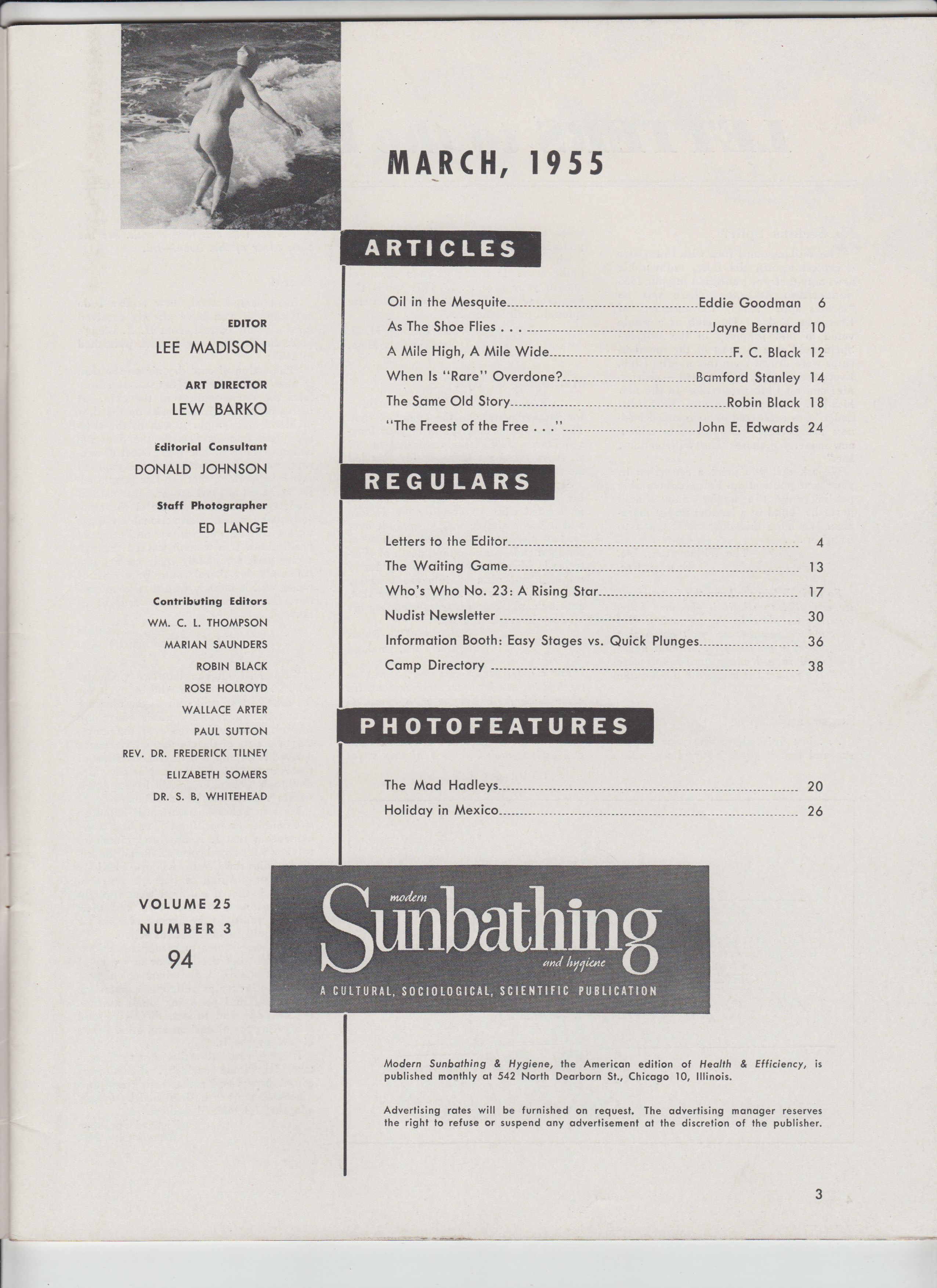 MODERN SUNBATHING AND HYGIENE Vol. 25 #4 (Variant Cover, March, 1955)