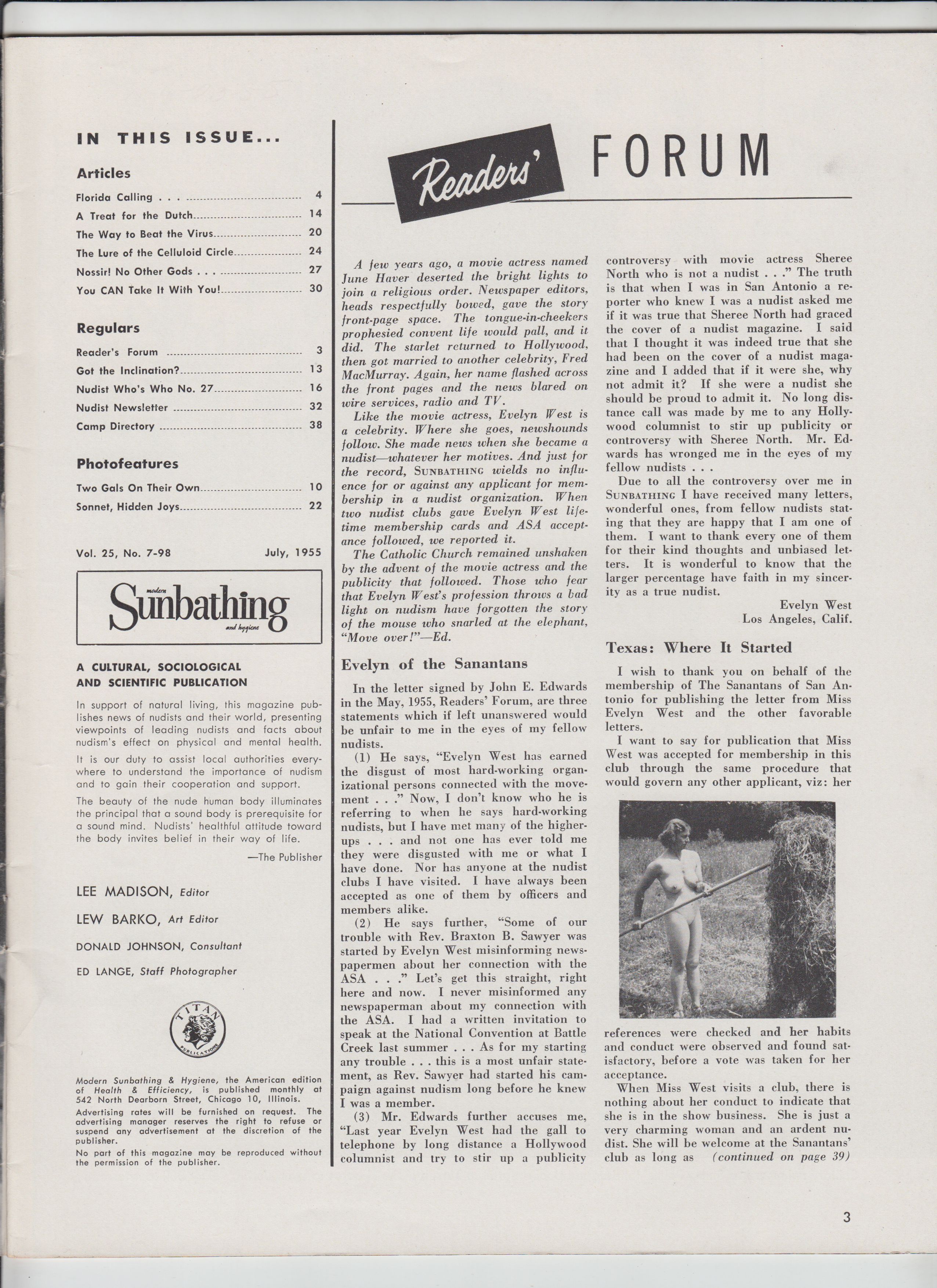 MODERN SUNBATHING AND HYGIENE Vol. 25 #7 (, July, 1955)