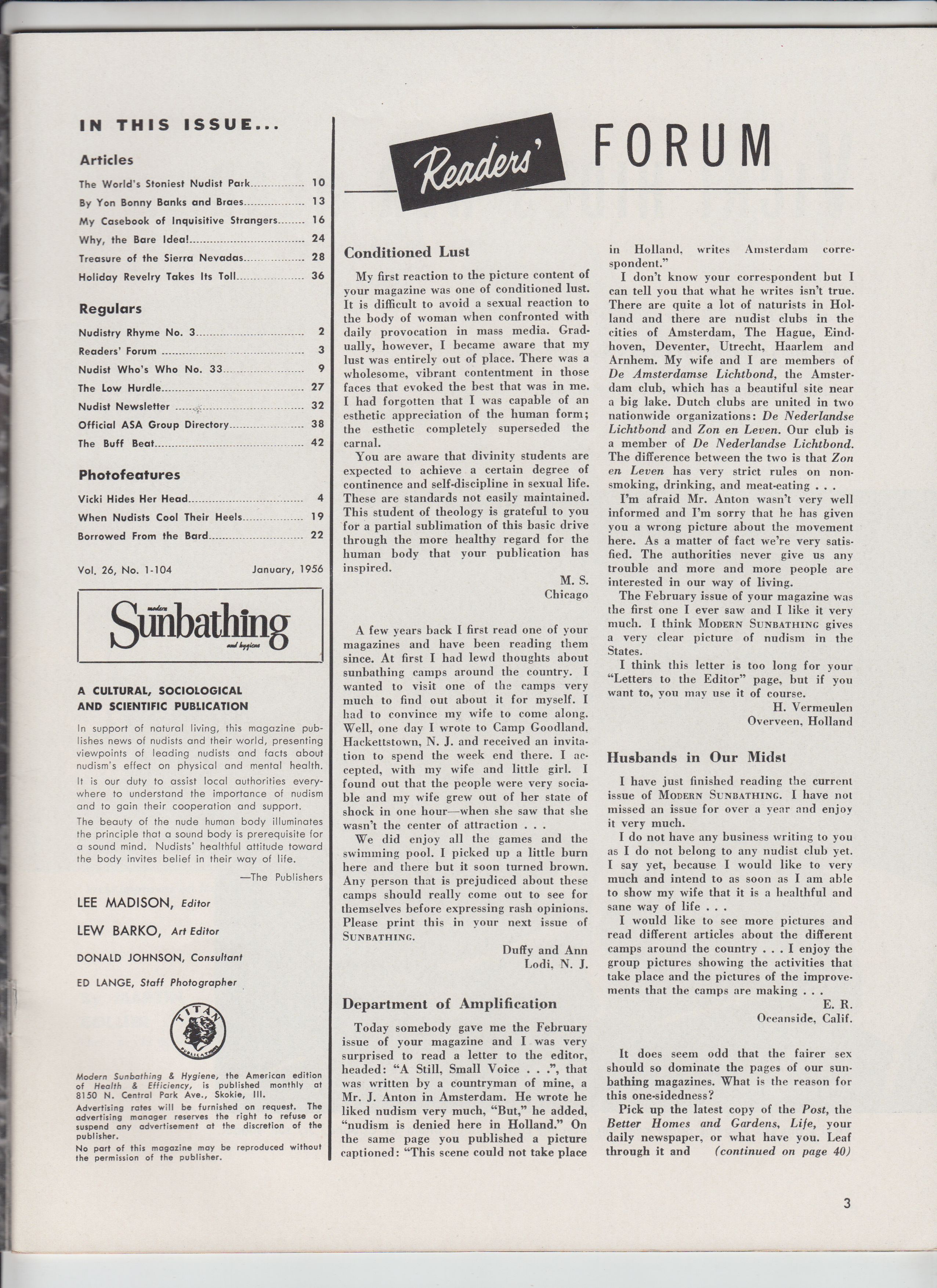MODERN SUNBATHING AND HYGIENE Vol. 26 #1 (, January, 1956)
