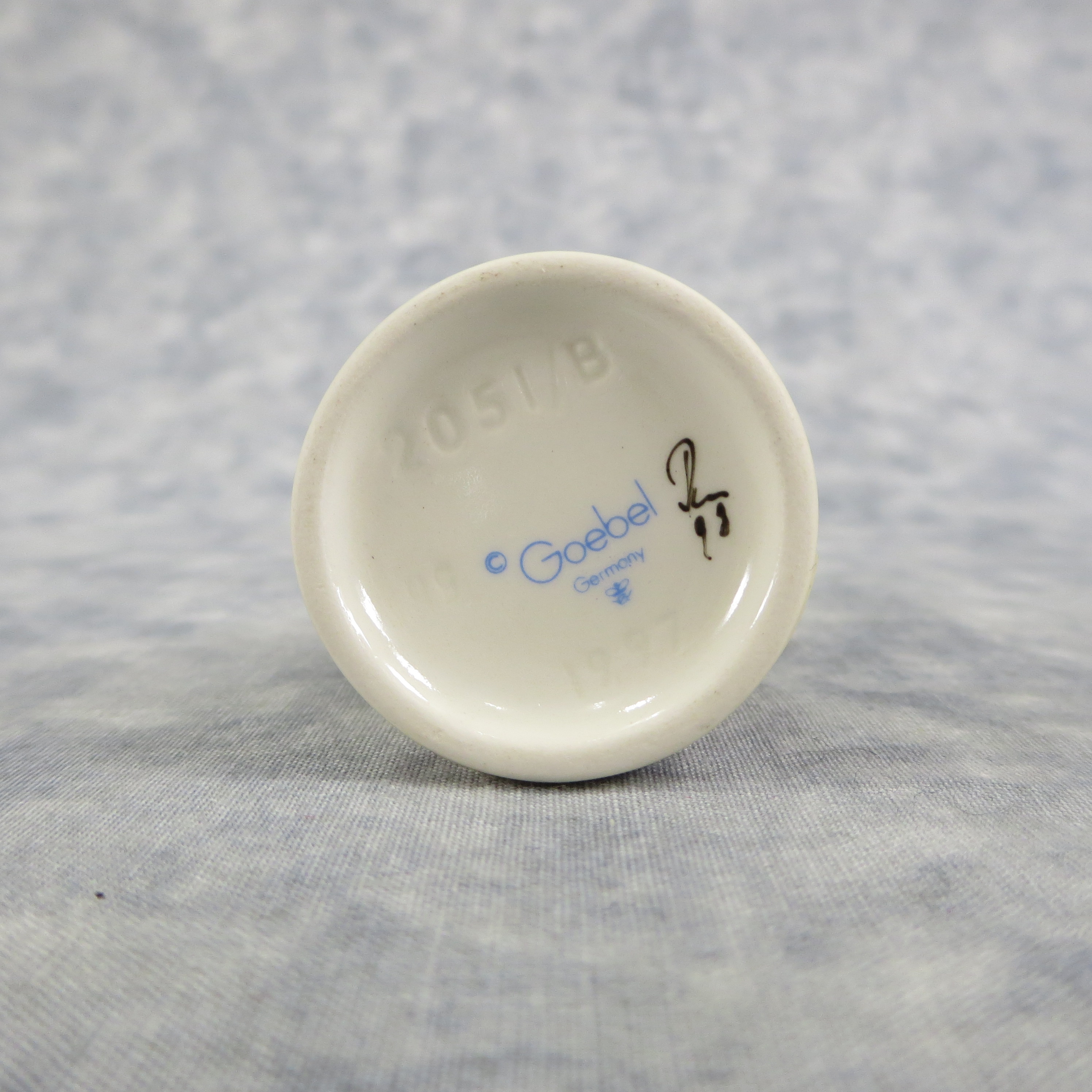 February 03, 2026 - 3-1/2 inches tall. Base incised 2051/B and 1997. Goebel TMK 7 trademark imprinted in blue on bottom of base. Painter hand-initialed and dated in black ink on bottom of base.