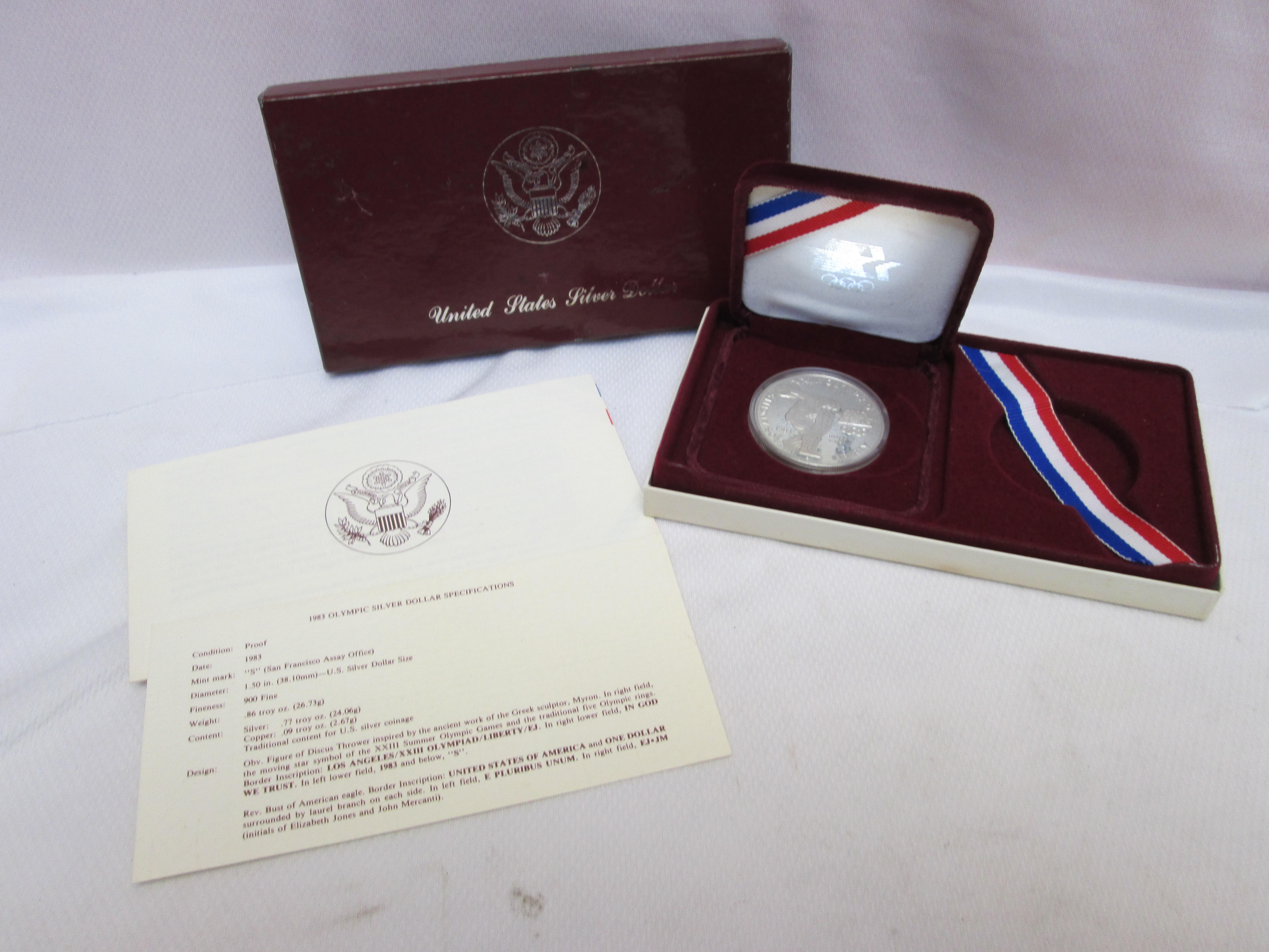 December 04, 2025 - San Francisco Mint. 1983 Olympic 90% Silver Dollar Proof. Coin is preserved in a hard plastic shell and displayed in a velvet-lined case, which is housed in an original U.S. Mint box and including certificates of authenticity.
