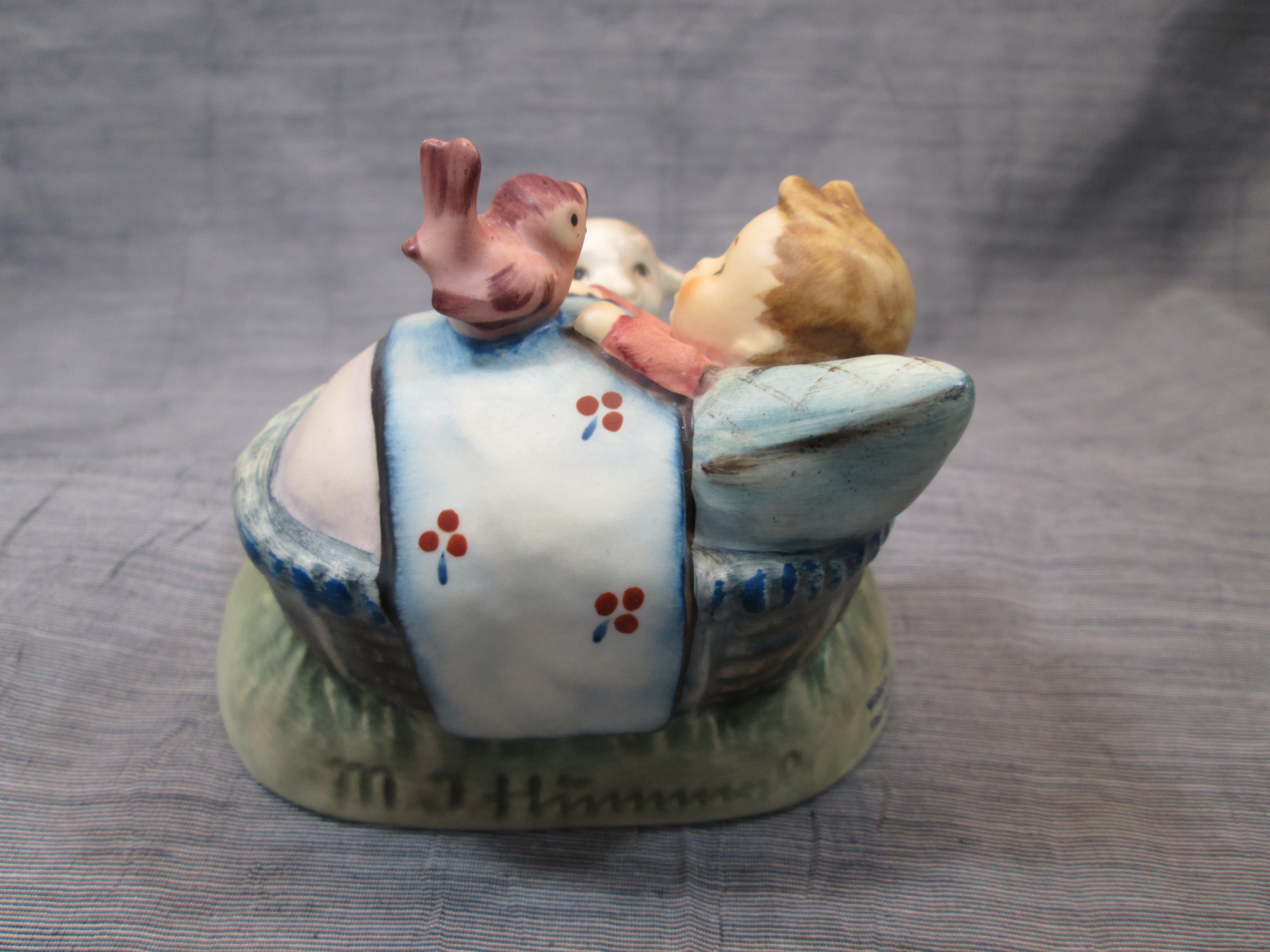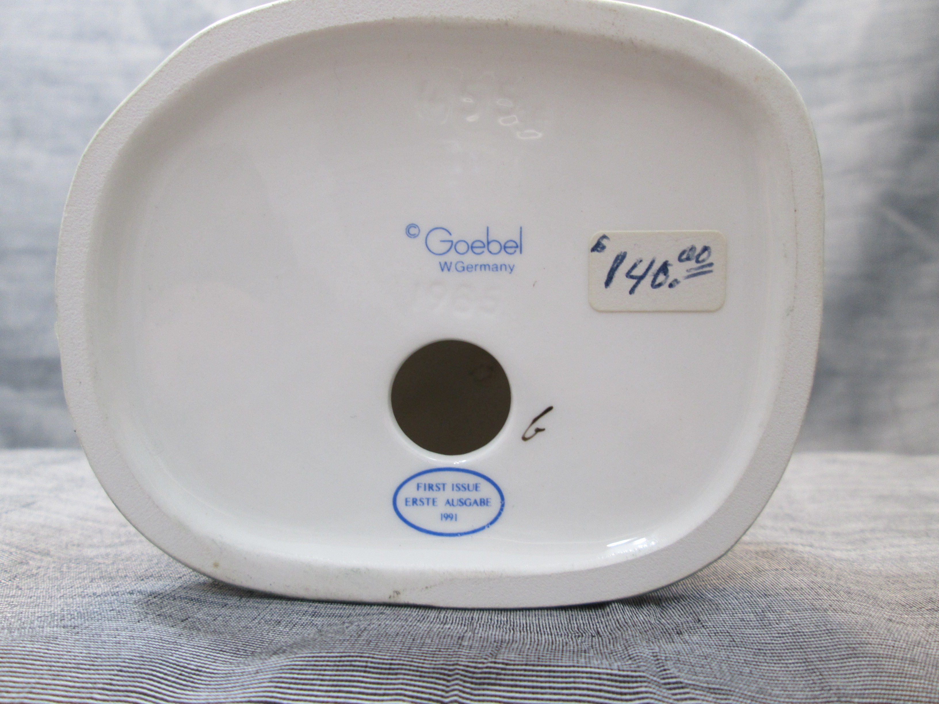 April 05, 2026 - 2-3/4 x 3-1/2 inches tall. Base is incised 455 and 1985. Goebel TMK 6 trademark and FIRST ISSUE ERSTE AUSGABE 1991 imprinted in blue on bottom of base. Painter hand-initialed in black ink on bottom of base.