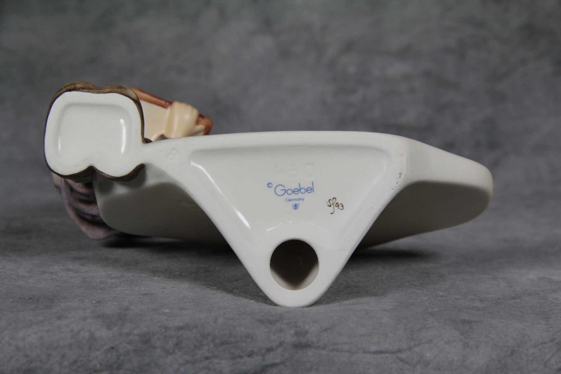 April 05, 2026 - 4-3/4 inches tall. Base is incised 460 and 1984. Goebel TMK 7 trademark imprinted in blue on bottom of base. Painter hand-initialed and dated in black ink on bottom of base.