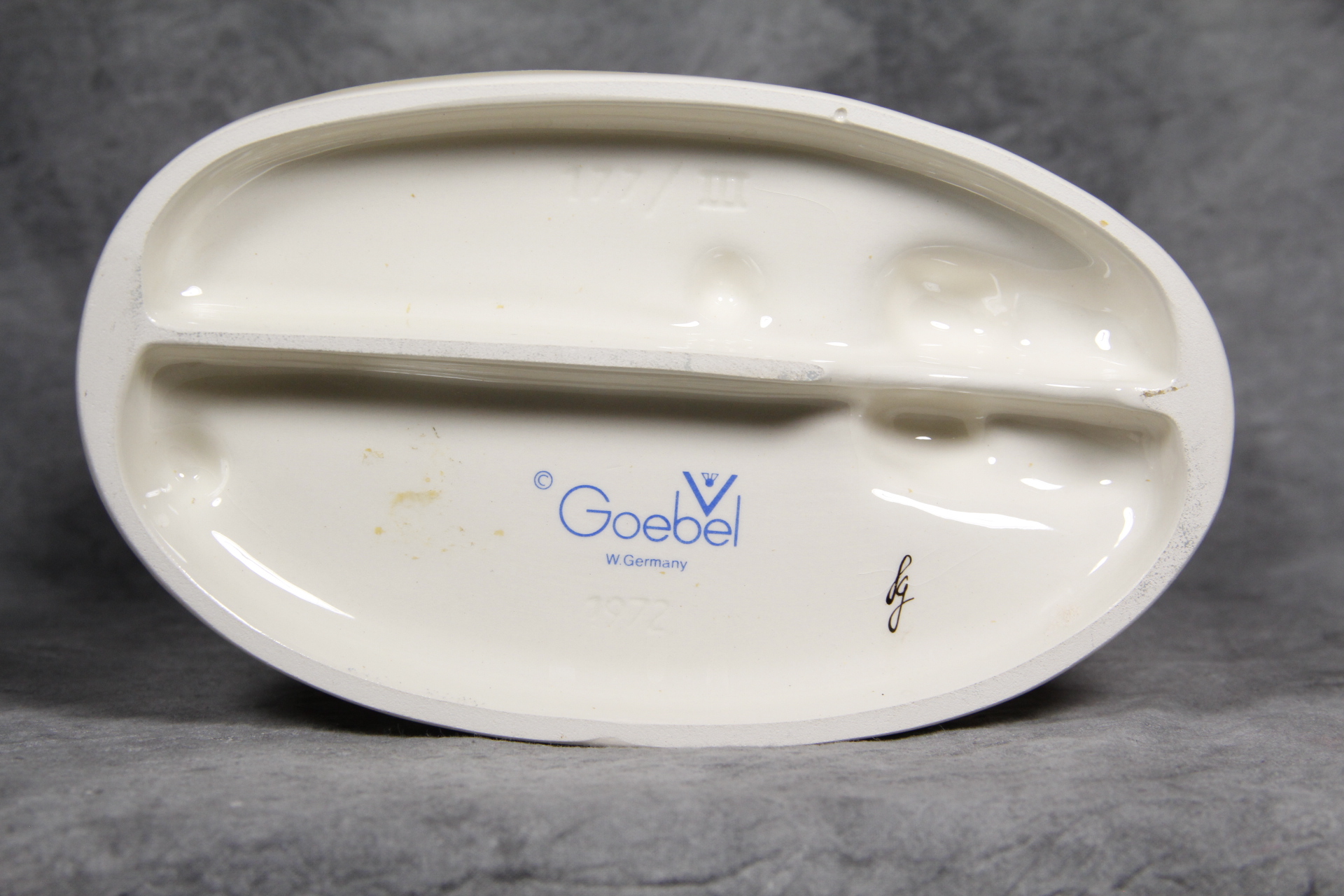 April 25, 2026 - 9-1/4 inches tall by 7 inches at base. Base is incised 177/III and 1972. Goebel TMK 5 trademark imprinted in blue on bottom of base. Painter hand-initialed and dated in black ink on bottom of base.