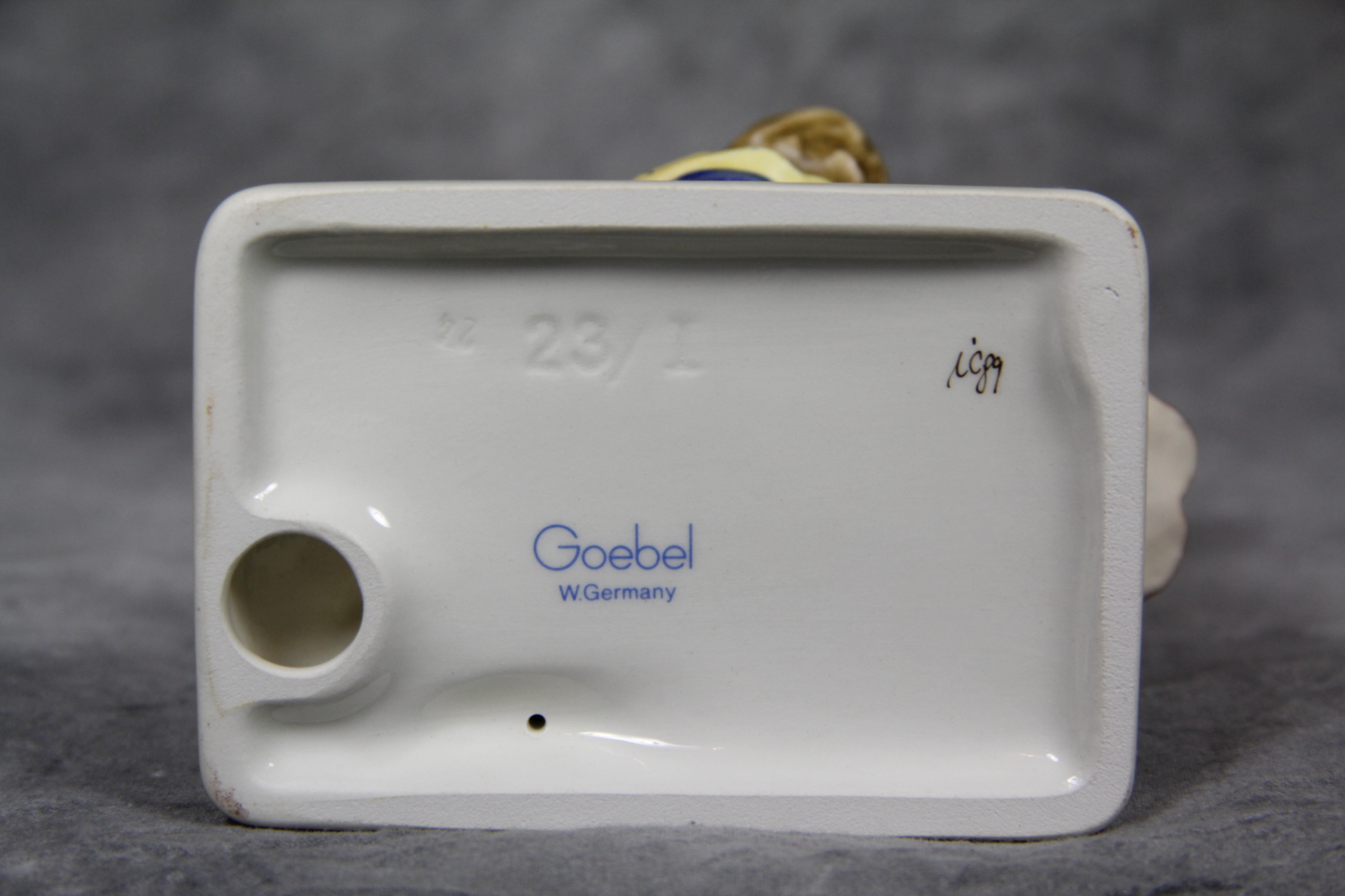 February 23, 2026 - 6-1/4 inches tall. Base is incised 23/I. Goebel TMK 6 trademark imprinted in blue on bottom of base. Painter hand-initialed and dated in black ink on bottom of base.