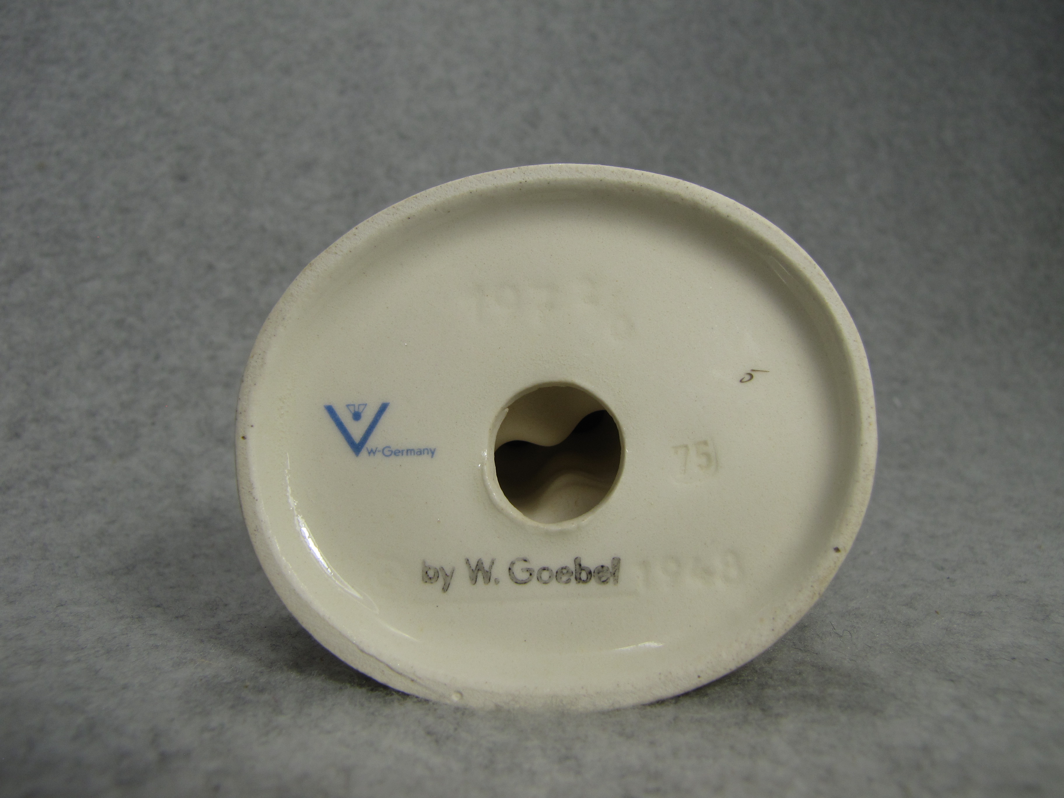 April 05, 2026 - 4 1/2 inches tall. Base is incised 197 2/0 and 1948. Goebel TMK 2 trademark imprinted in blue and by W. Goebel imprinted in black on bottom of base.