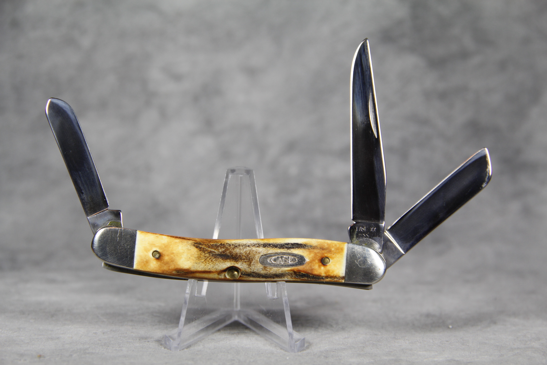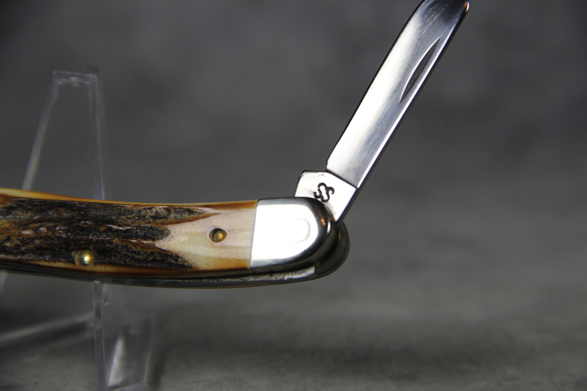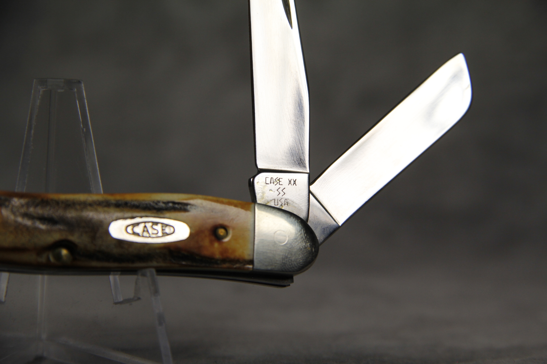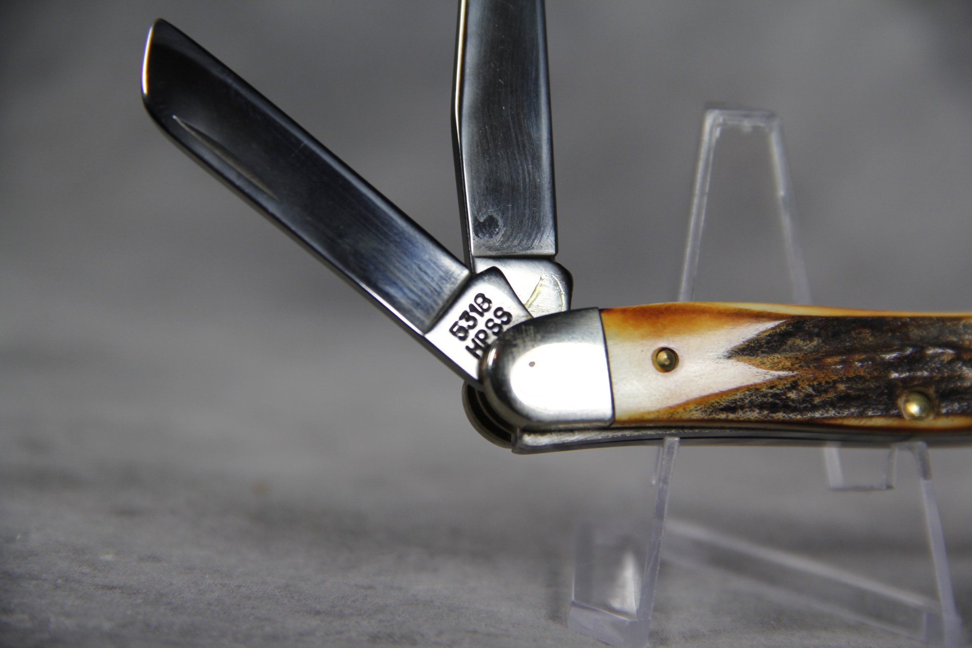 March 15, 2026 - 3-1/2 inches closed. 6 inches open. Made in USA. 'CASE XX SS USA' and '5318HPSS' tang stamp. Oval 'Open C' Case shield. Stainless Steel blades. Stag handle. Nickel Silver bolsters. Brass liner. With original box and paperwork.