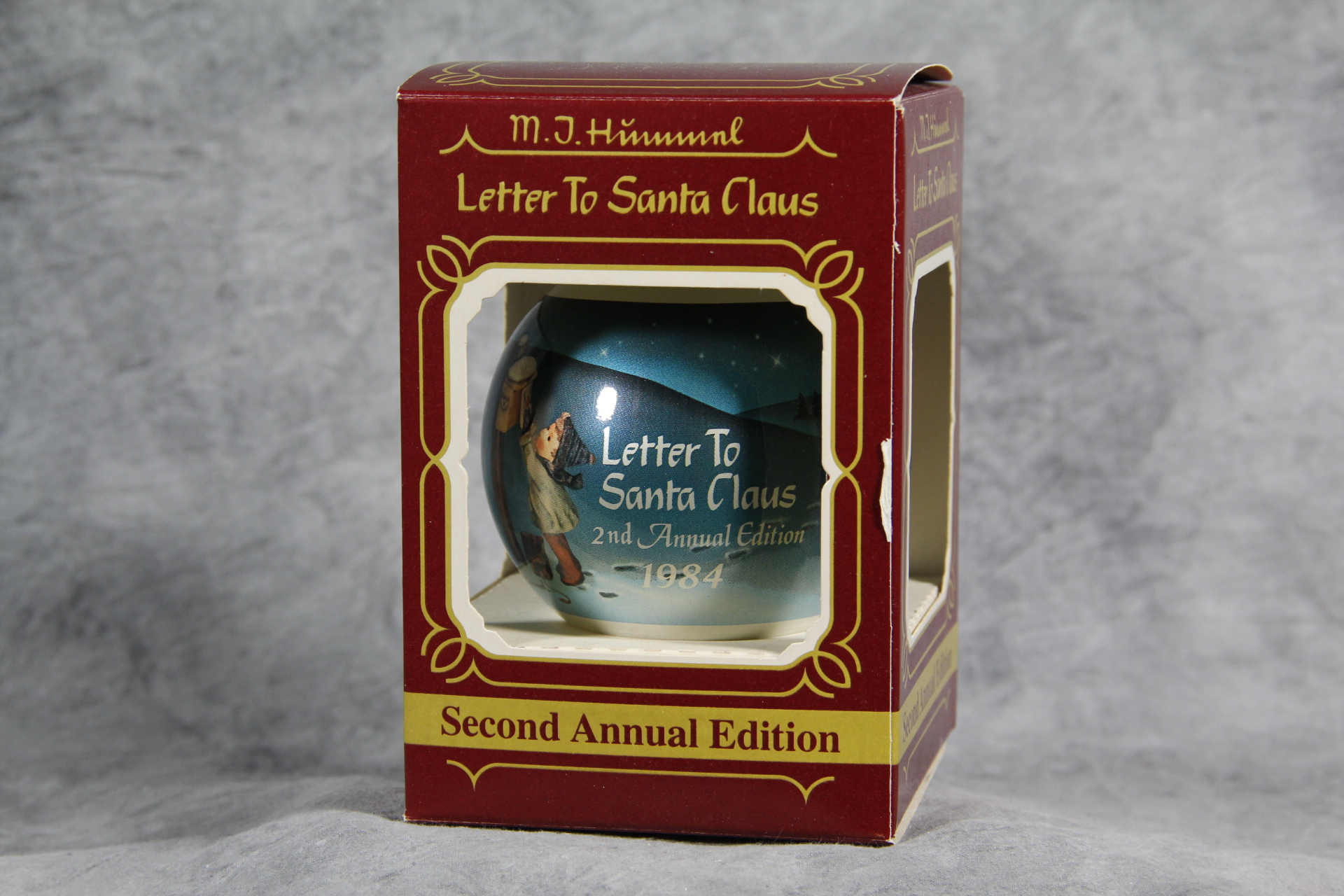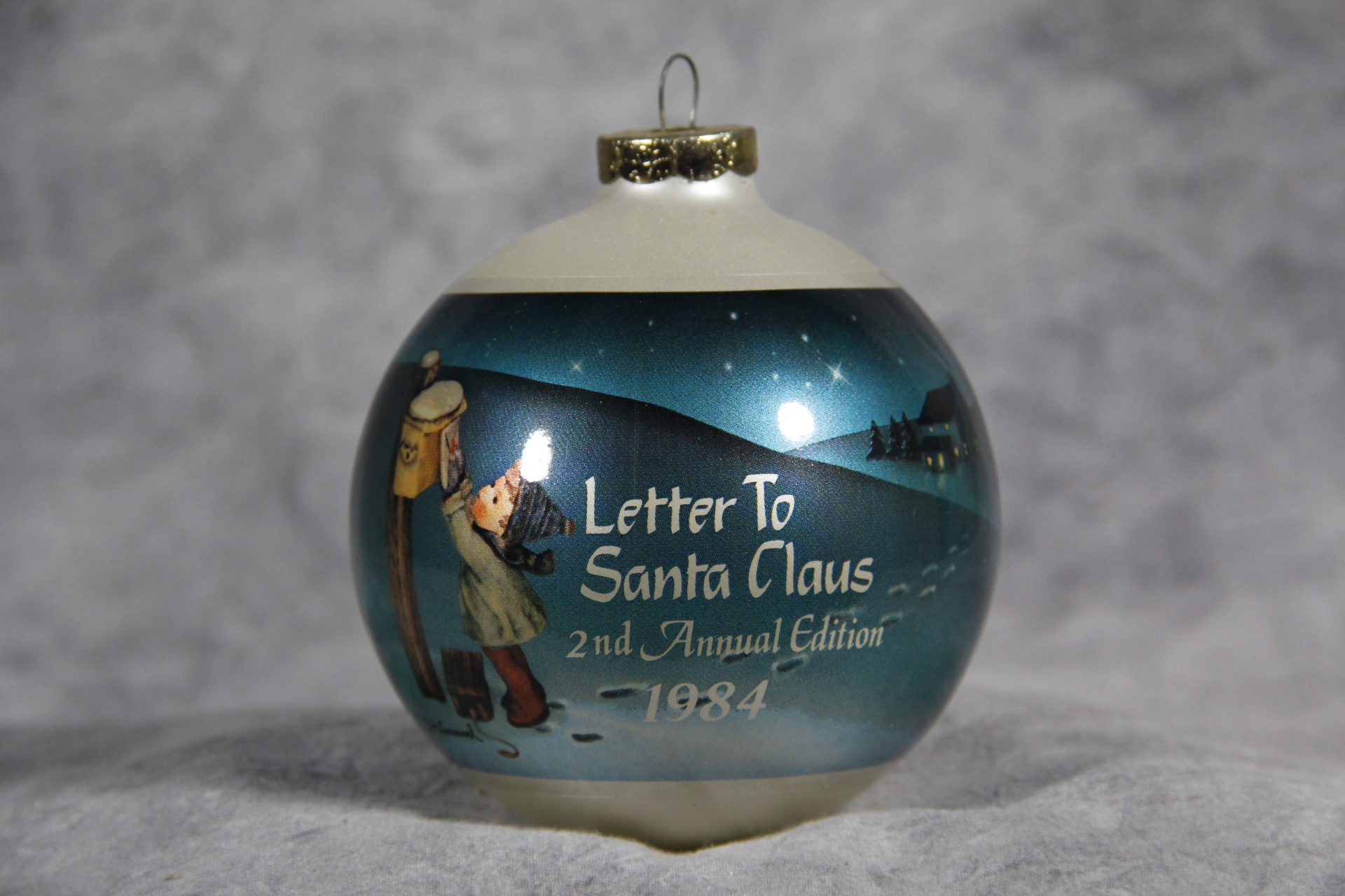February 23, 2026 - 3 inches in diameter. Ornament reads '"Letter to Santa Claus 2nd Annual Edition 1984". The image and text is the same on both sides. (c) Goebel 1983. Made in U.S.A.