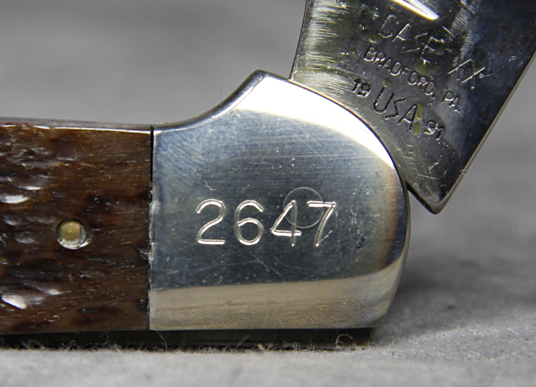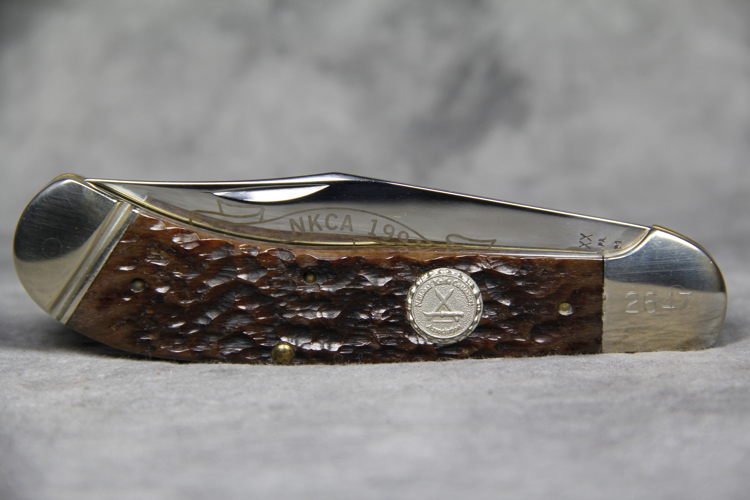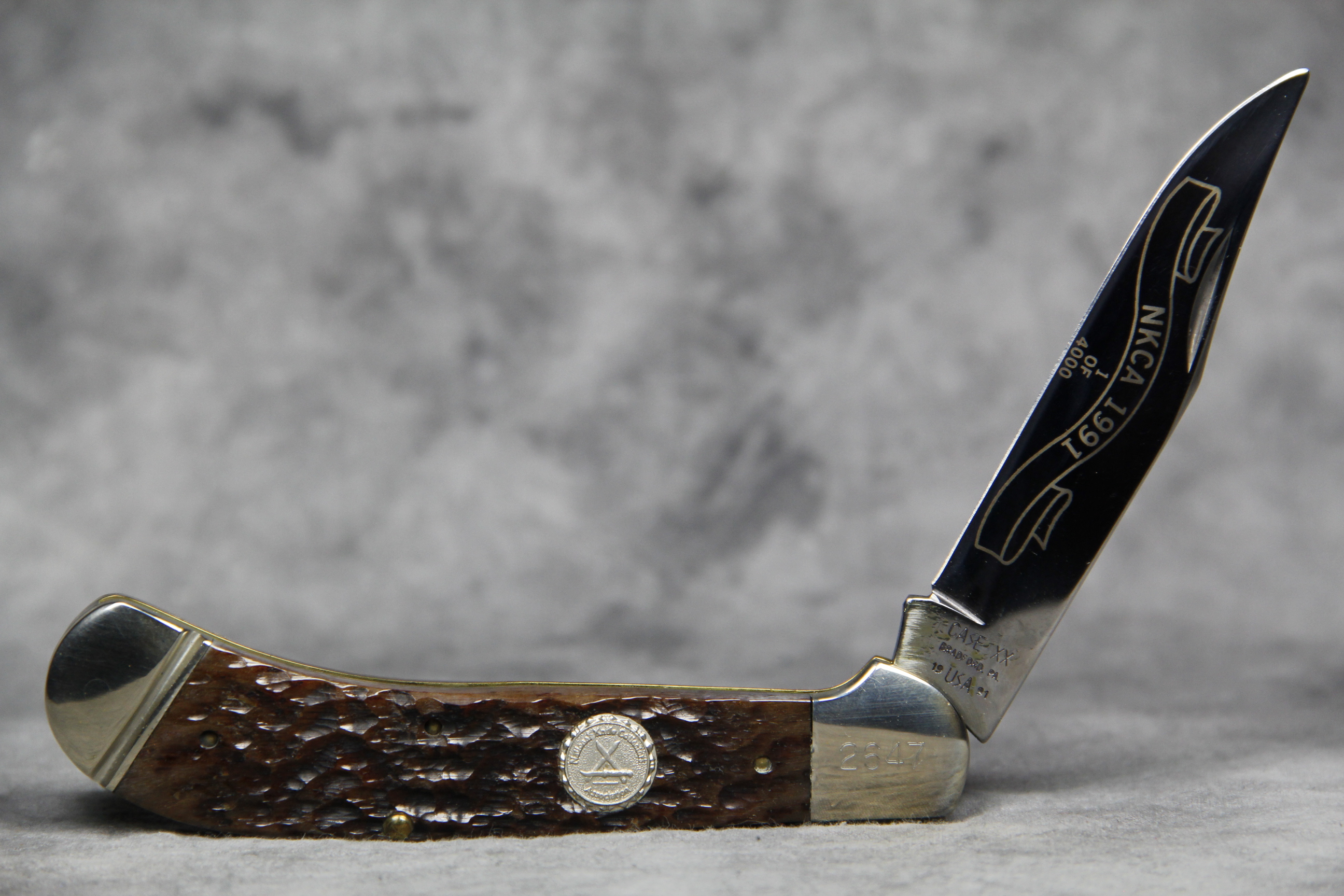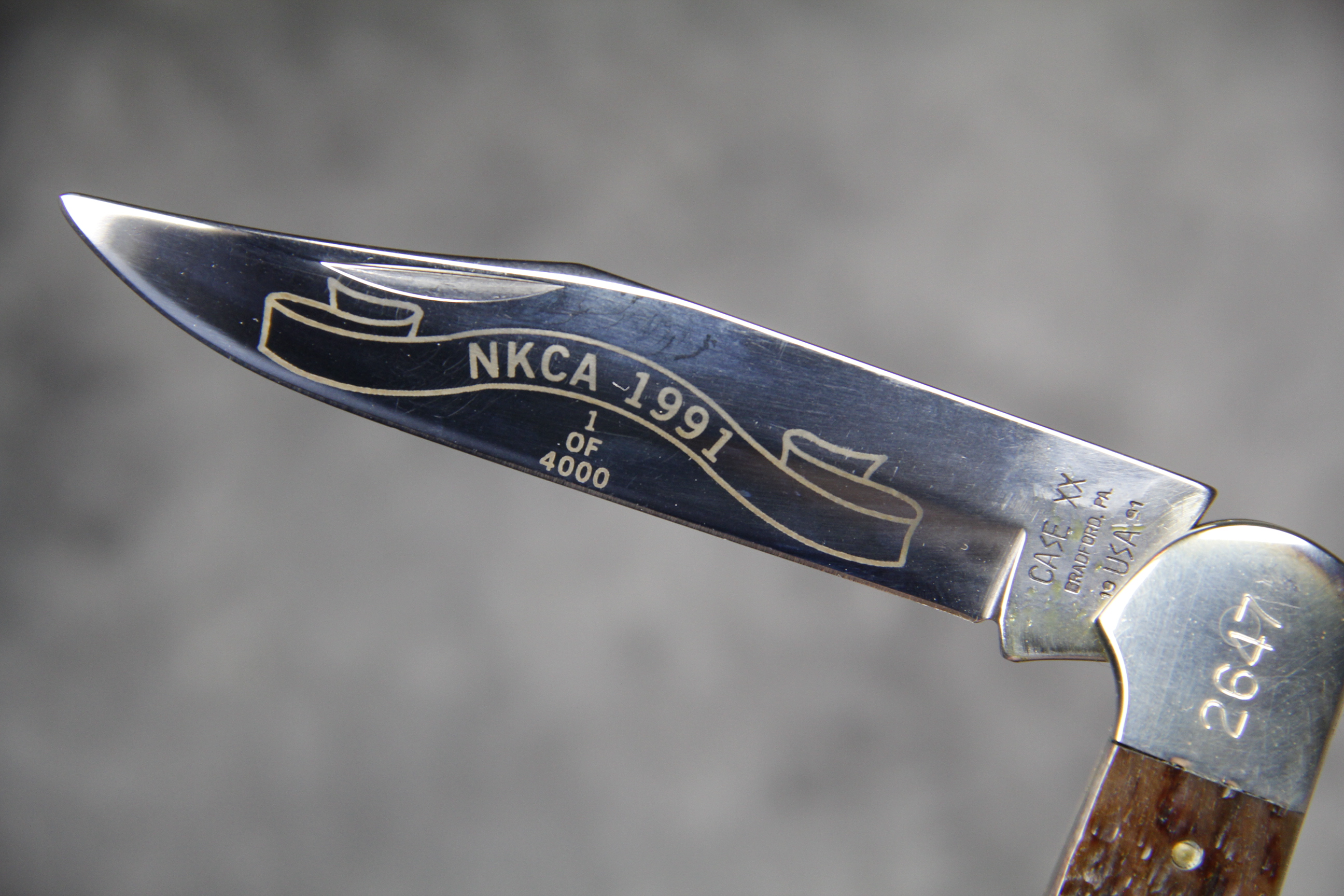 February 23, 2026 - Limited Edition of 4000. 4-5/8 inches closed. 8-1/4 inches open. Made in USA. 'Case XX Bradford, PA 19 USA 91' (with lightning bolt S) and 'DB61100 SS' tang stamps. Round NKCA shield. Stainless Steel blades. Master blade etched "NKCA 1991  1 OF 4000". Jigged dark brown bone handle. Nickel Silver bolsters; front right bolster etched with serial #. Brass liner.