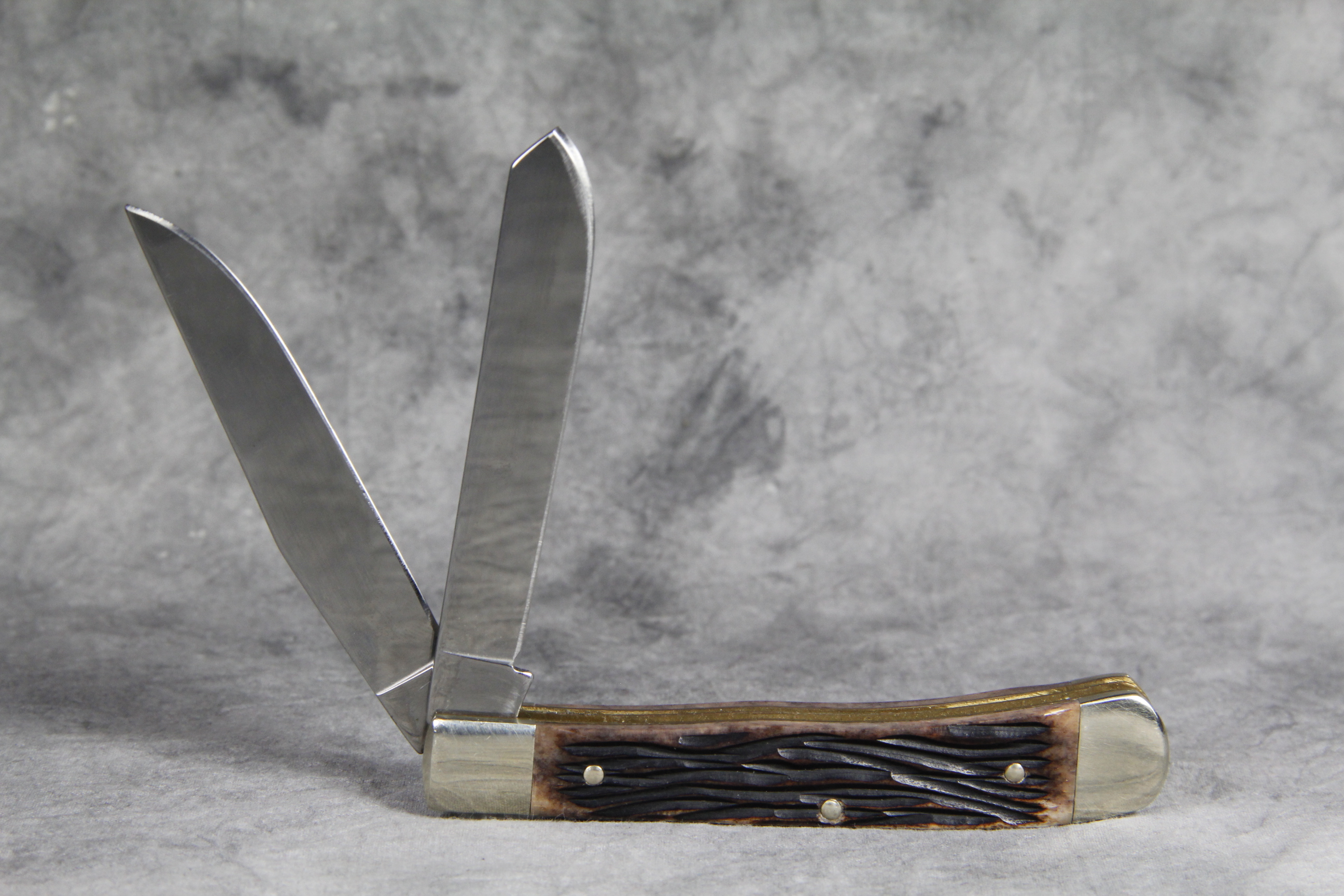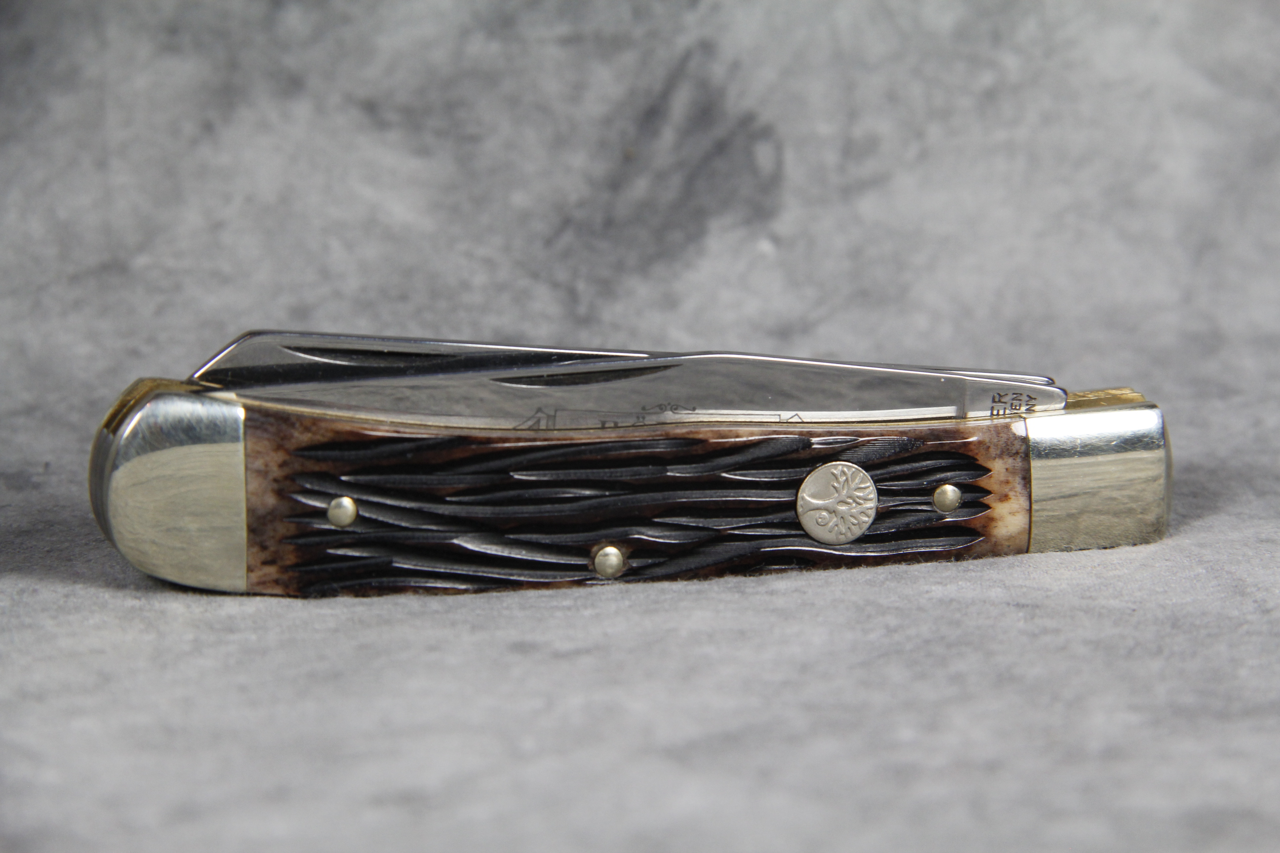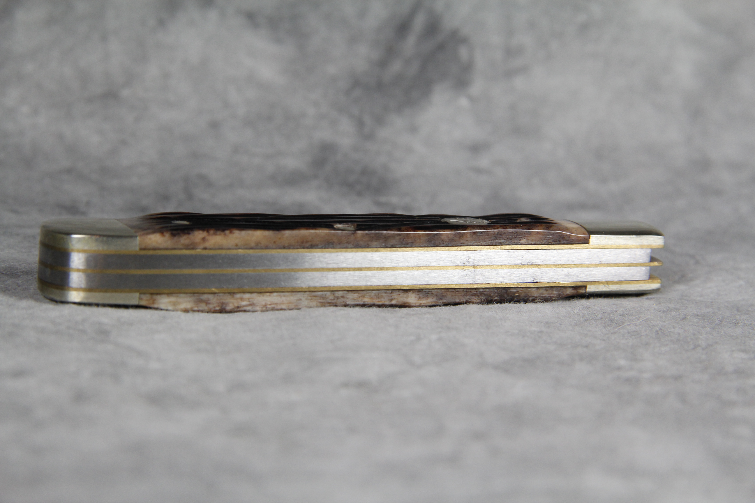January 14, 2026 - 4-1/8 inches closed. 7-3/8 inches open. 'Boker' etched onto blade; 'Boker Solingen Germany' tang stamp. Circle Tree shield. Stainless Steel blades. Jigged Bone handle. Nickel Silver bolsters. Brass liner.