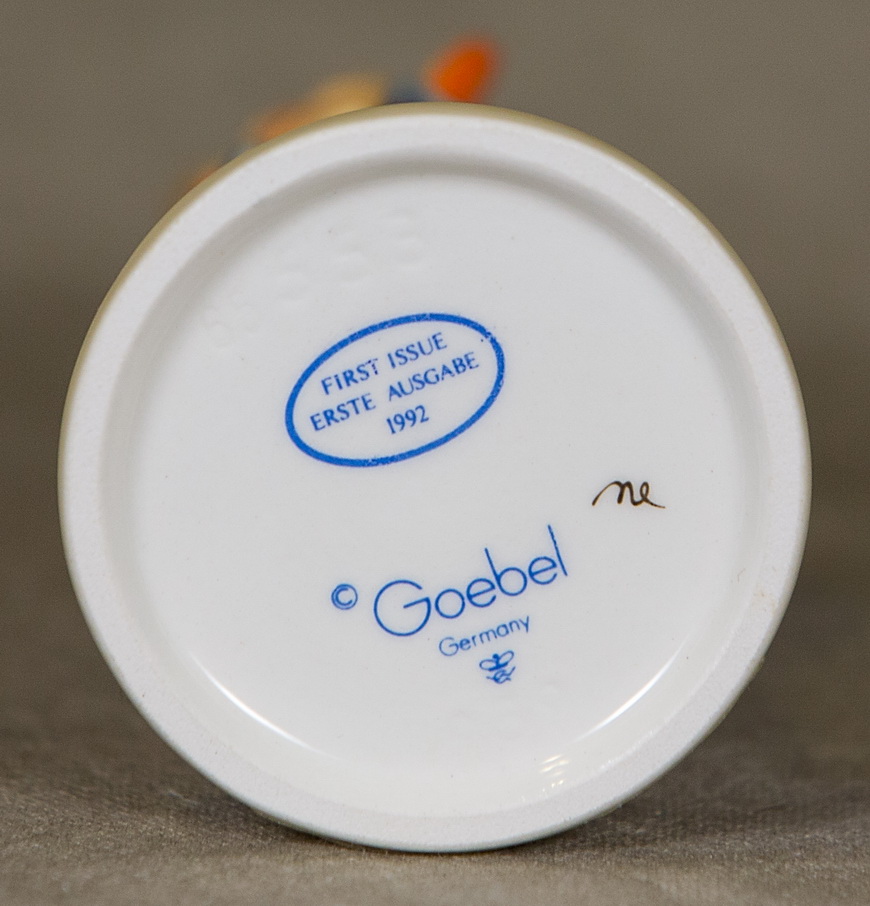 February 03, 2026 - 3-1/2 inches tall. Base is incised 553 and 1989. Goebel TMK 7 trademark and 'FIRST ISSUE / ERSTE AUSGABE / 1992' imprinted in blue on bottom of base. Painter hand-initialed in black ink on bottom of base.