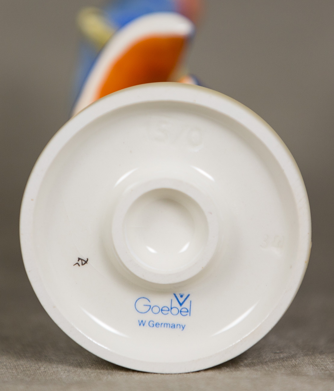March 16, 2026 - 5-1/4 inches tall. Base is incised 15/0. Goebel TMK 5 trademark imprinted in blue on bottom of base. Painter hand-initialed in black ink on bottom of base.