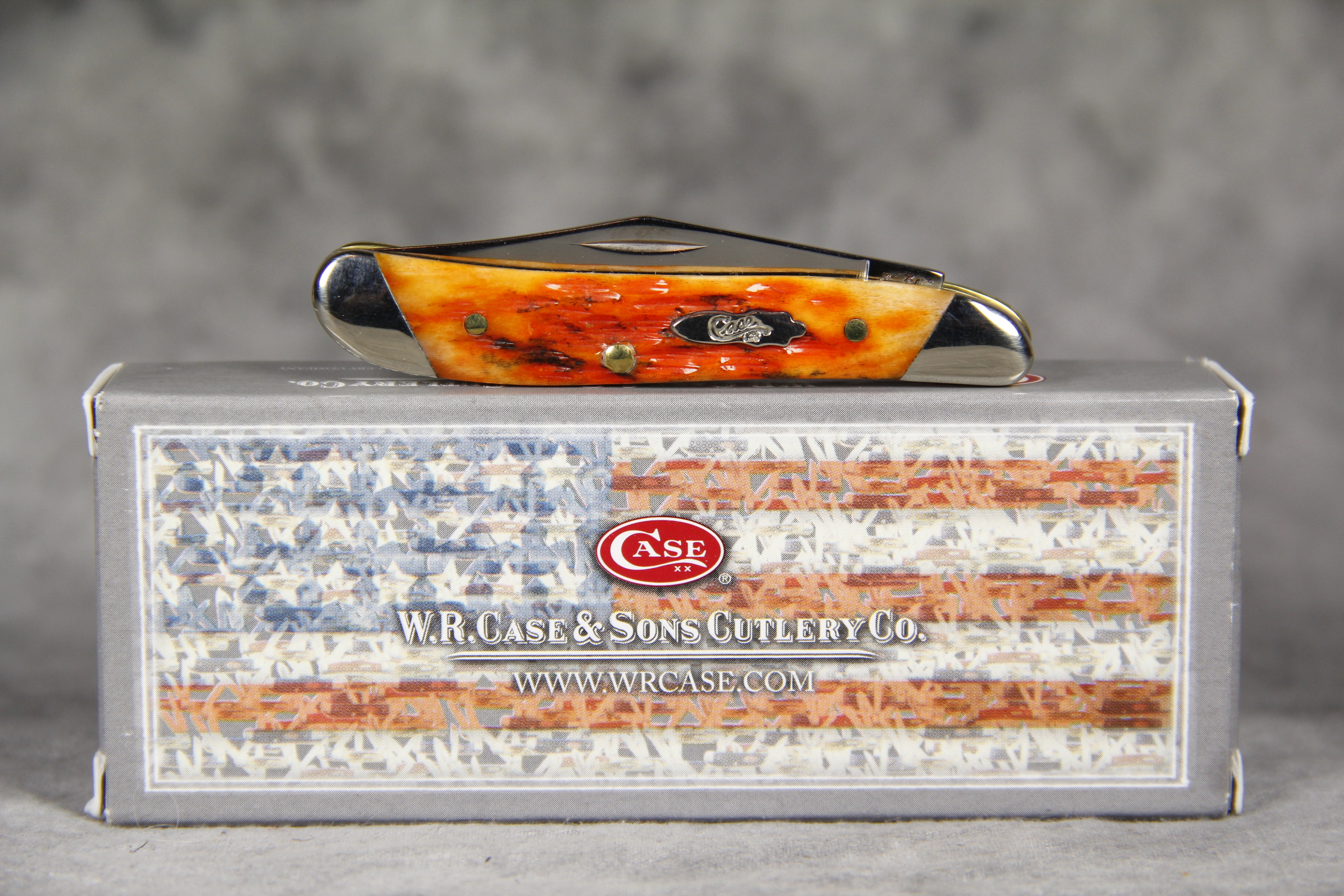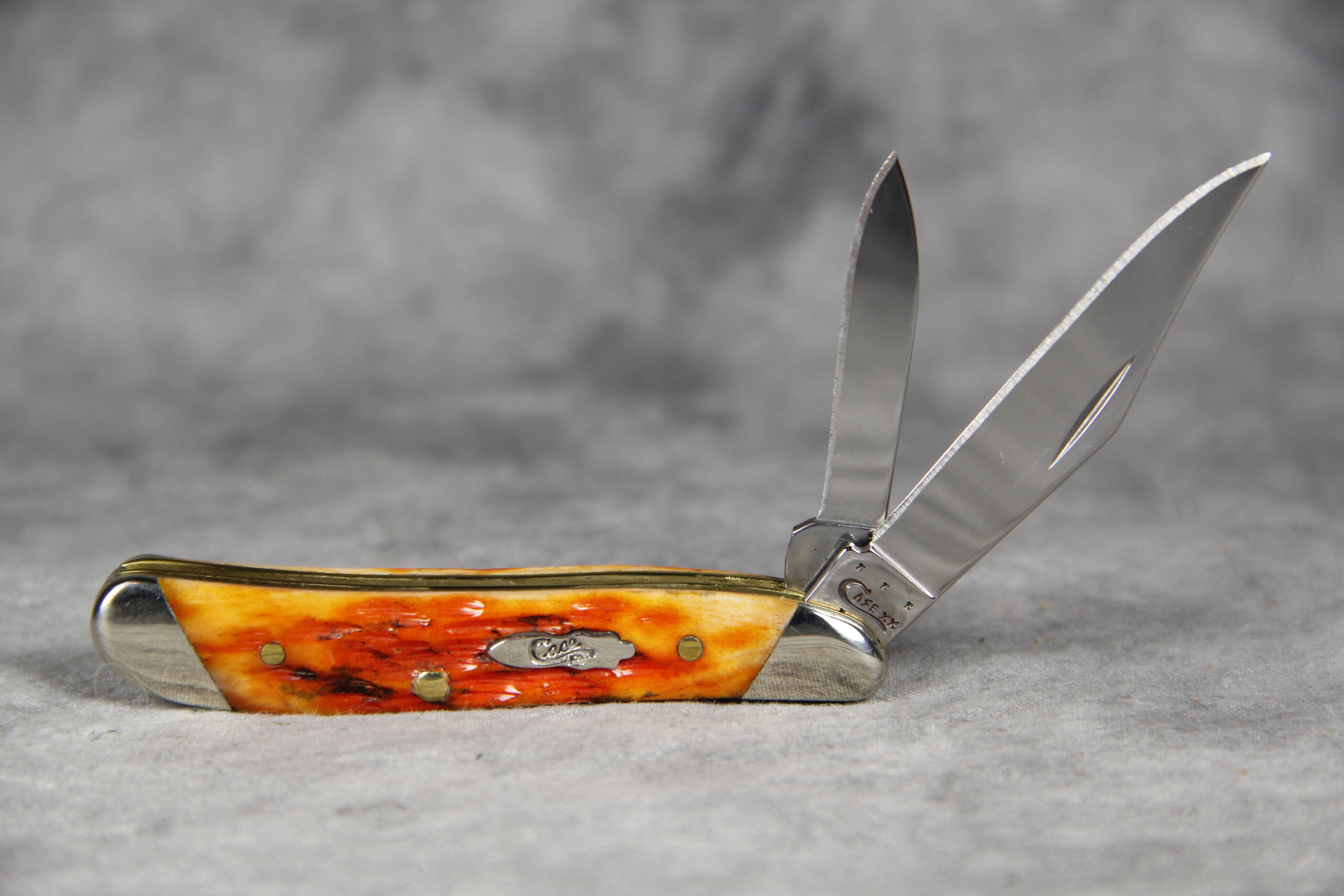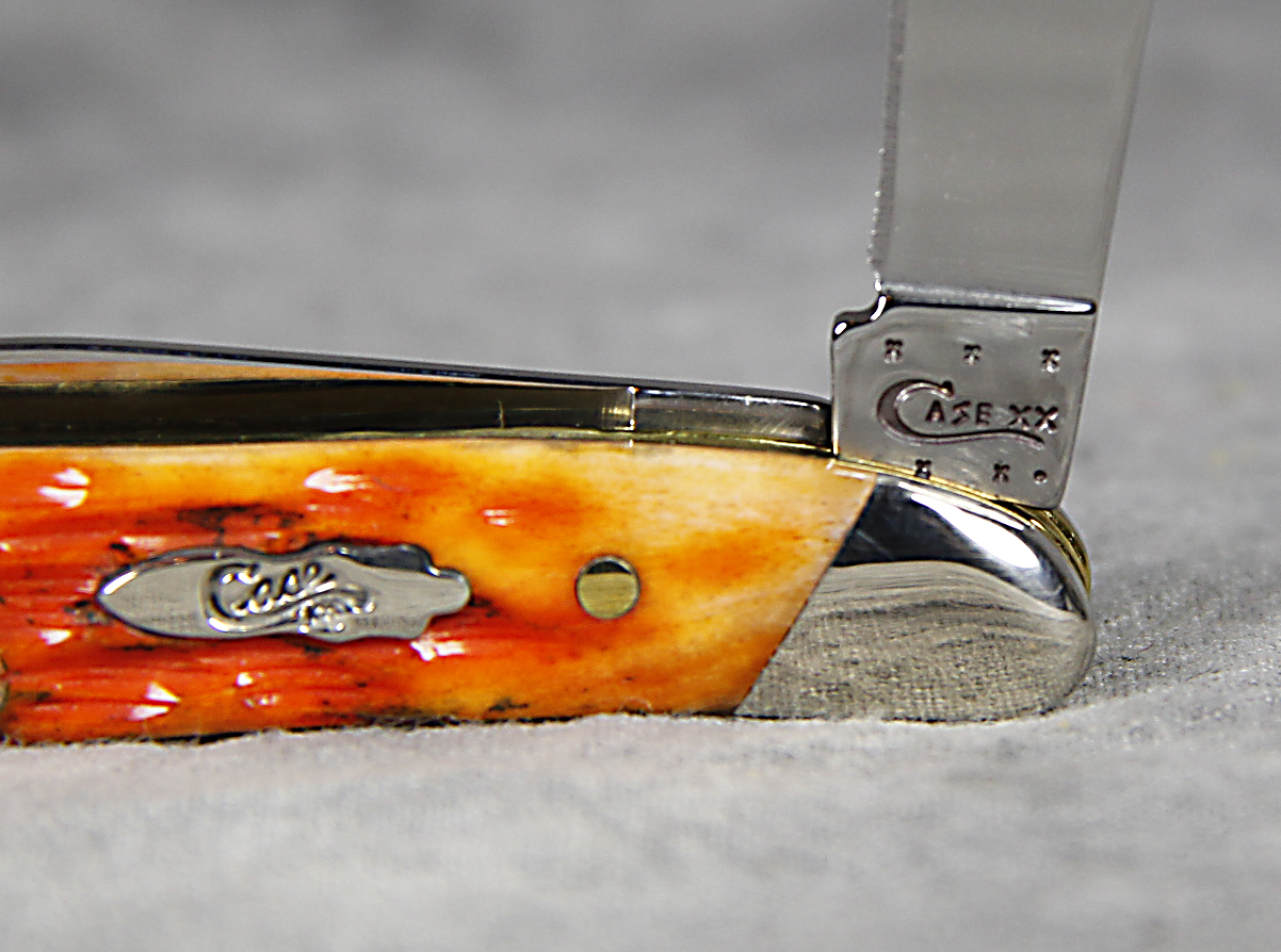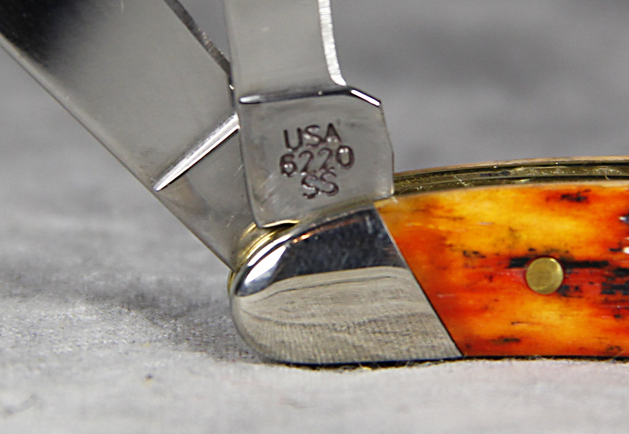 February 23, 2026 - 2-3/4 inches closed. 4-7/8 inches open. Made in USA. " x x x Case XX x x* " (with lightning bolt S) and "USA 6220 SS" tang stamps. Bomb 'Long C' Case XX embossed shield. Stainless Steel blades. Autumn Bone handle. Nickel Silver bolsters. Brass liner. With original box and paperwork.