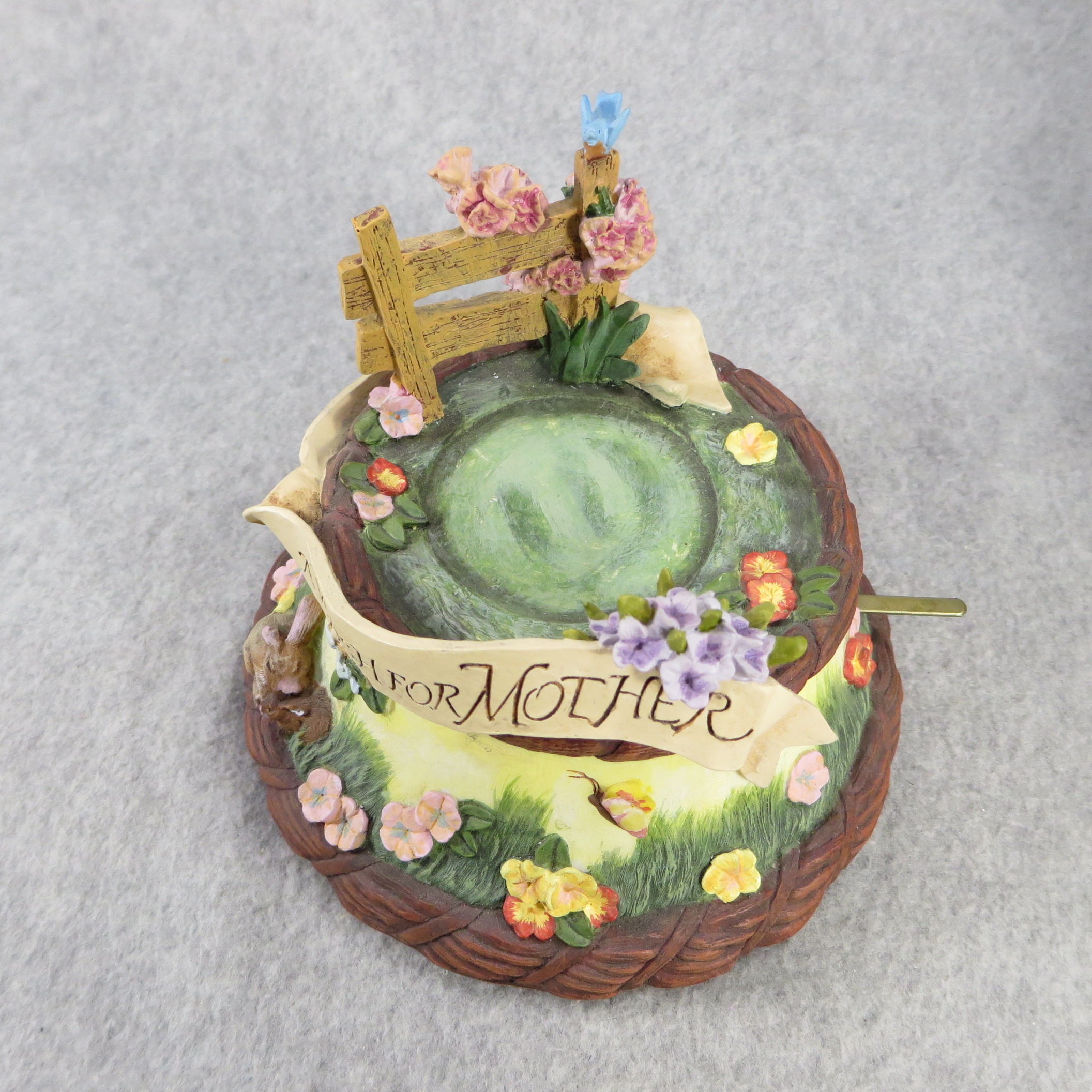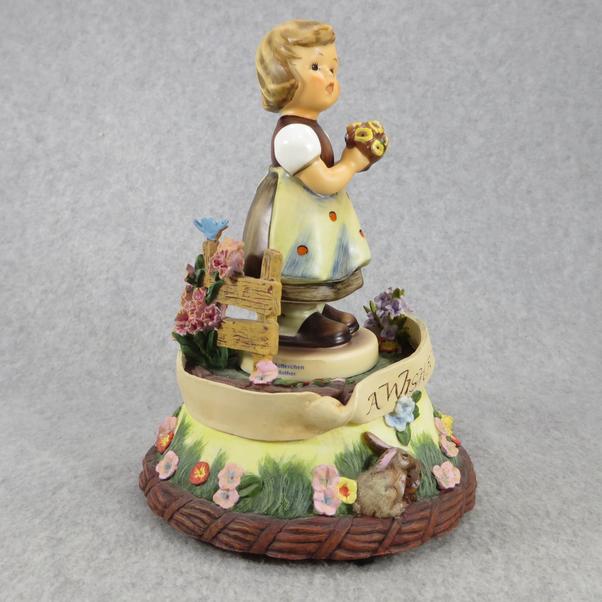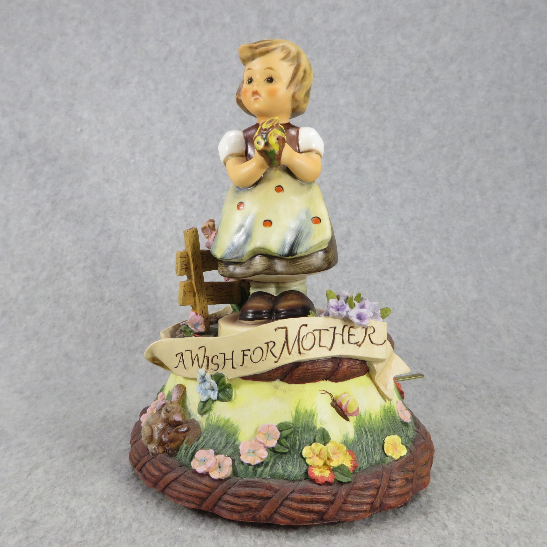 A WISH FOR MOTHER MUSIC BOX IS AS FOLLOWS: 4-1/2 inches tall by 5-1/2 inches wide at base. Base nameplate is stamped MUSIKFEST COLLECTION / I JUST CALLED TO SAY I LOVE YOU / GOEBEL 1998.