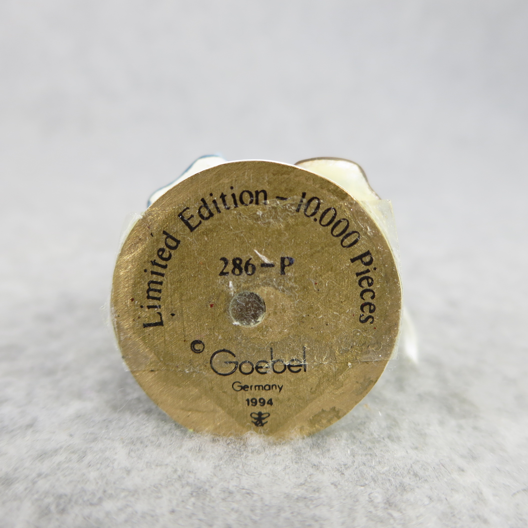April 05, 2026 - RING AROUND THE ROSIE miniature figurine is 2-3/4 inches tall. Goebel TMK 8 trademark and 'LIMITED EDITION - 10.000 PIECES / 286-P' imprinted in bluack on bottom of base.
