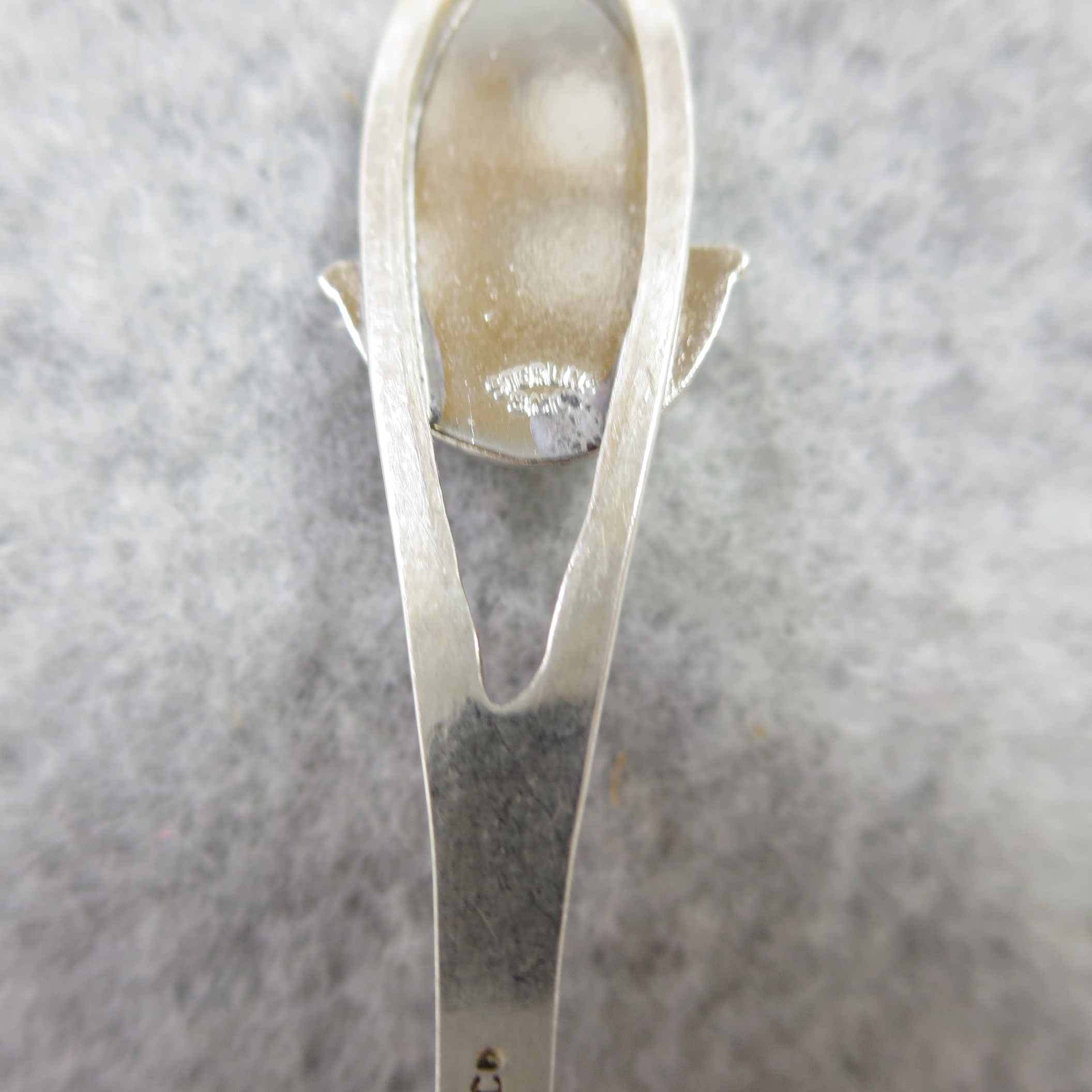 December 04, 2025 - Solid sterling silver. Hallmarked "sterling" on both pieces. Spoon reads, "expulsis piratis restituta commercia" which translates to "Pirates were driven restored trade"