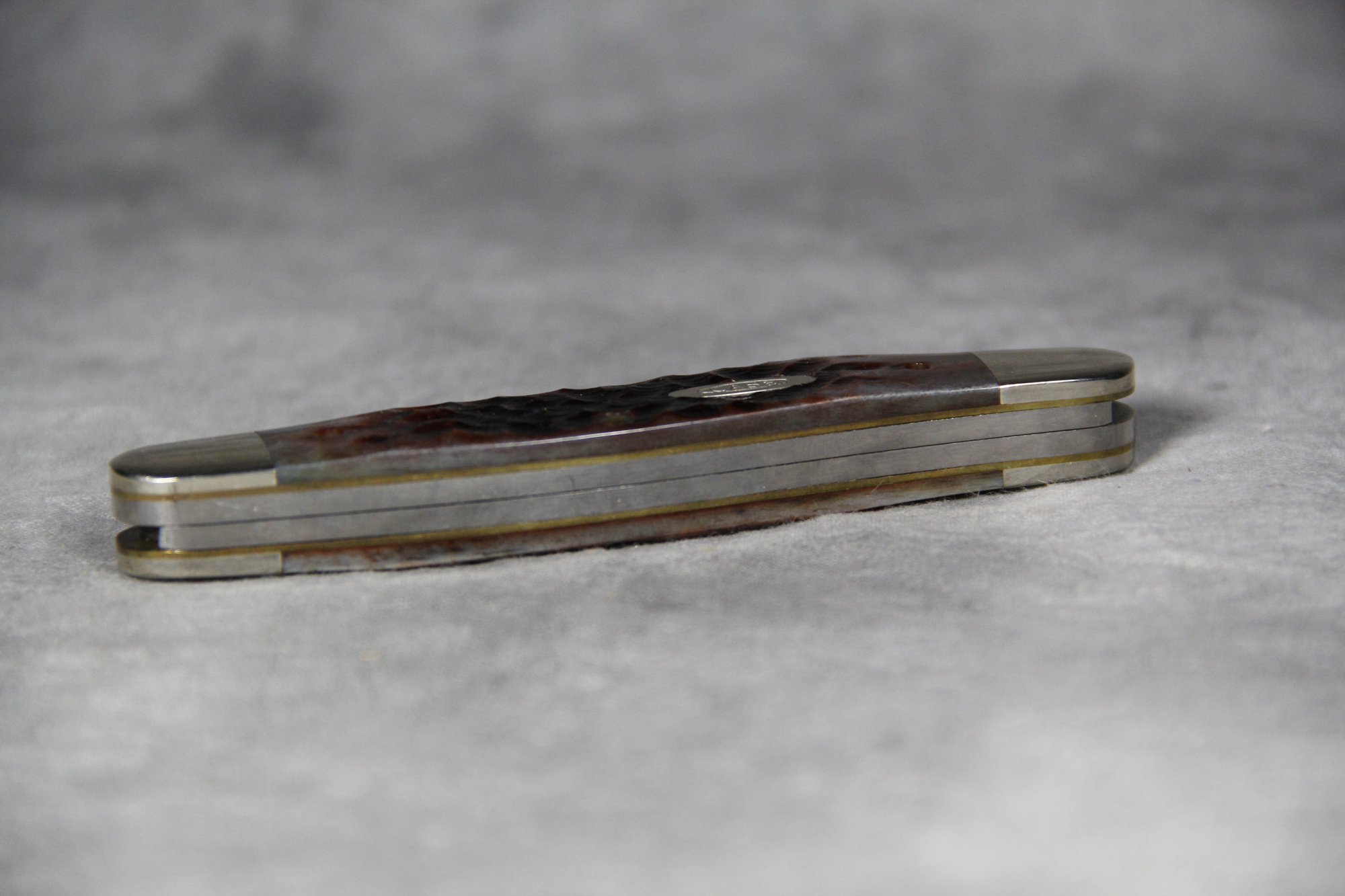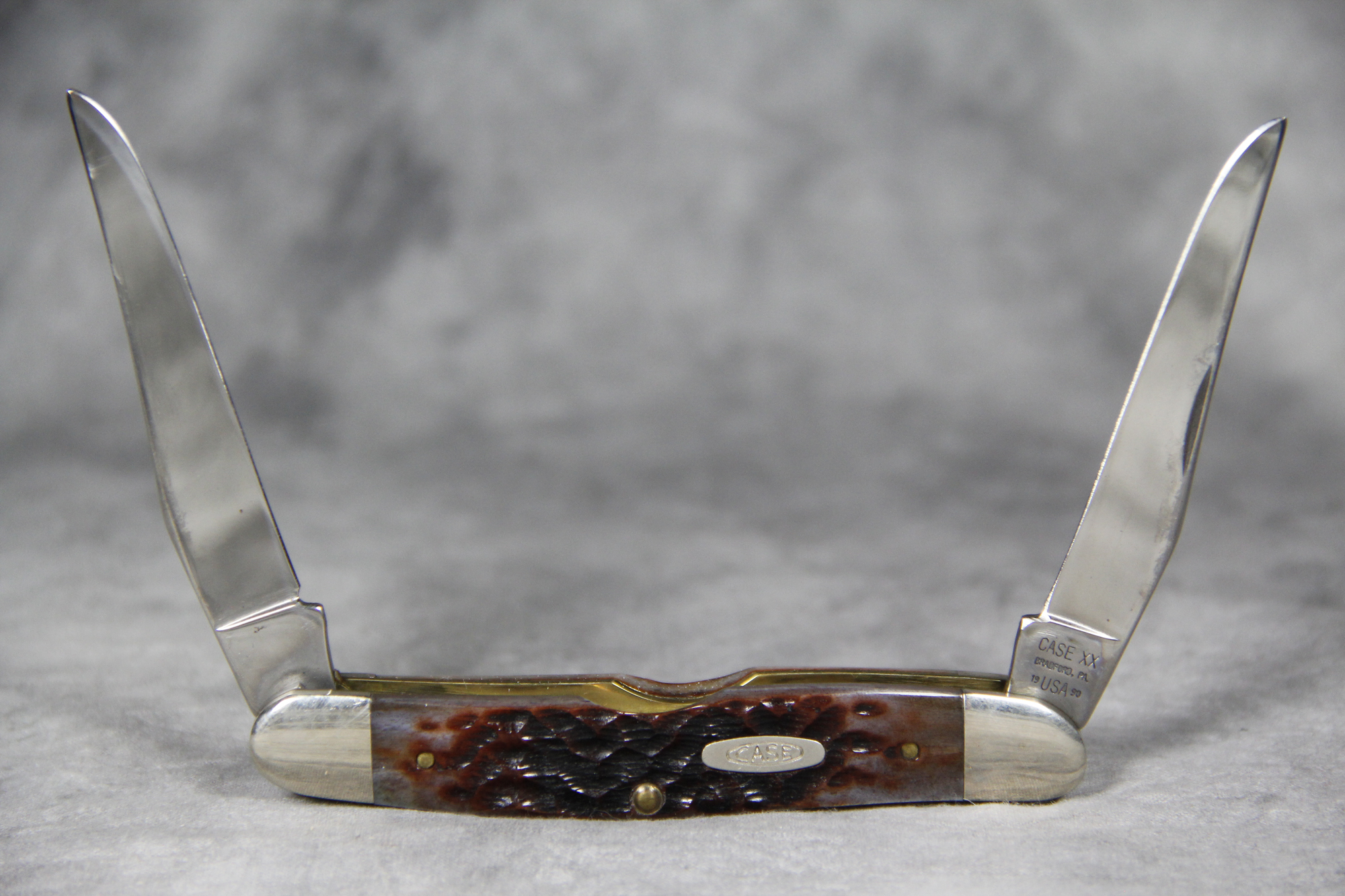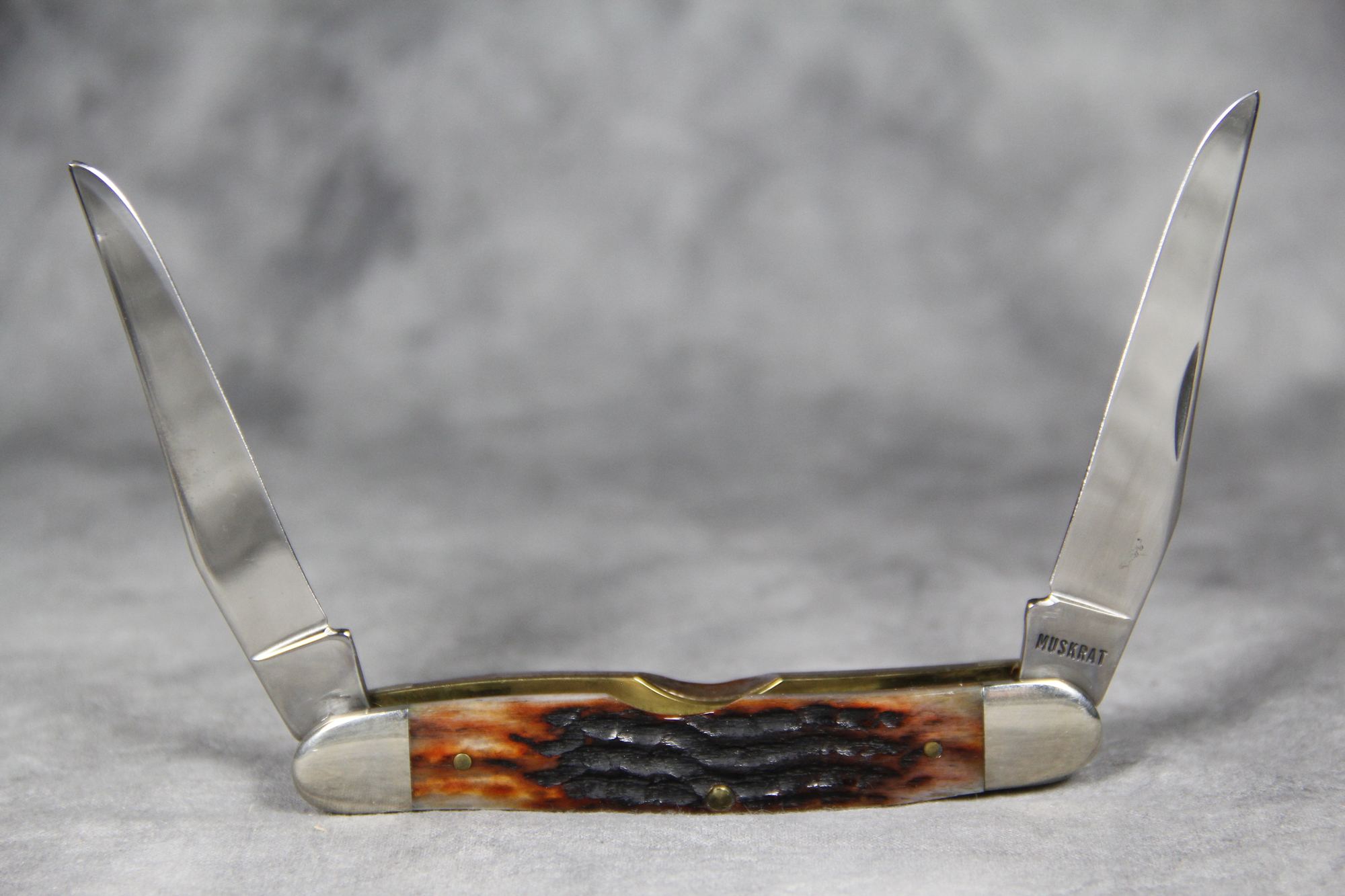 April 05, 2026 - 3-7/8 inches closed. 6-5/8 inches open. Made in USA. "CASE XX BRADFORD, PA 19 USA 90" and "MUSKRAT" tang stamps. Double Oval 'Open C' CASE shield. Jigged Bone handle. Nickel Silver bolsters. Brass liner.