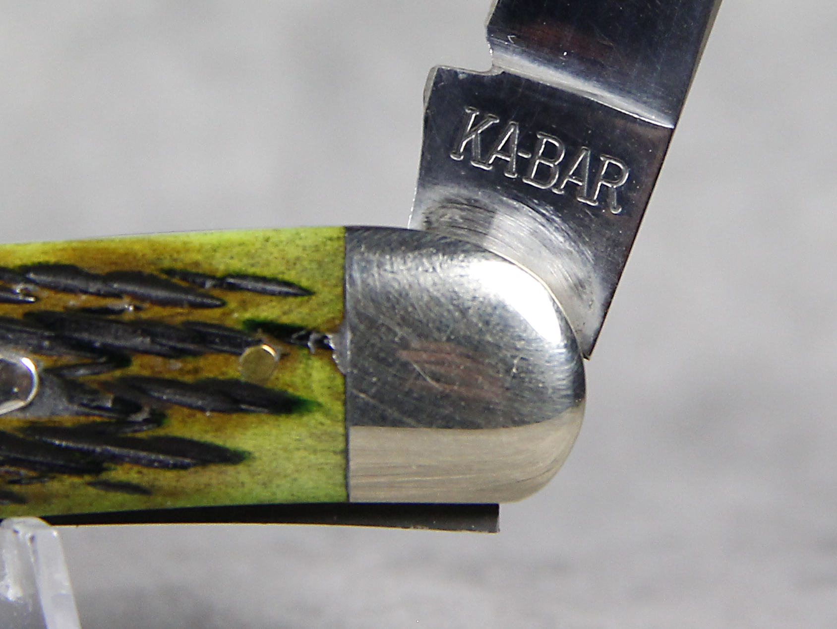 February 03, 2026 - 4-1/4 inches closed. 7-3/4 inches open. Made in USA. "KA-BAR" and "TR94" tang stamps. Oval "Ka'bar" shield. Jigged Green Bone handle. Nickel Silver bolsters. Brass liner.
