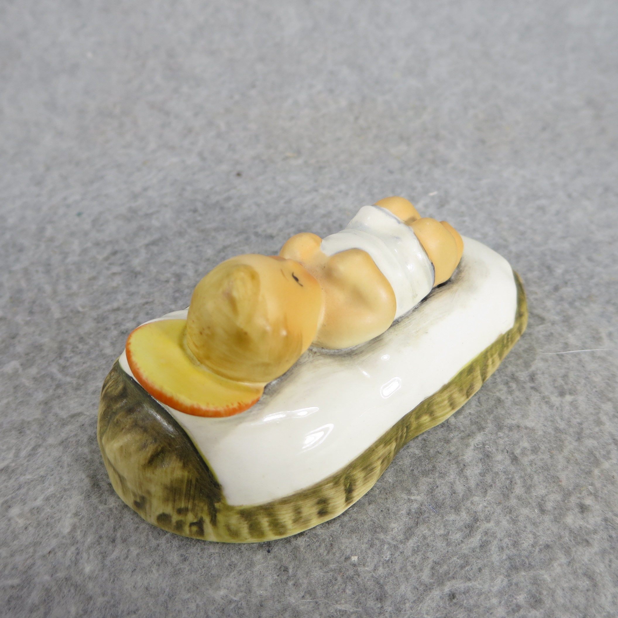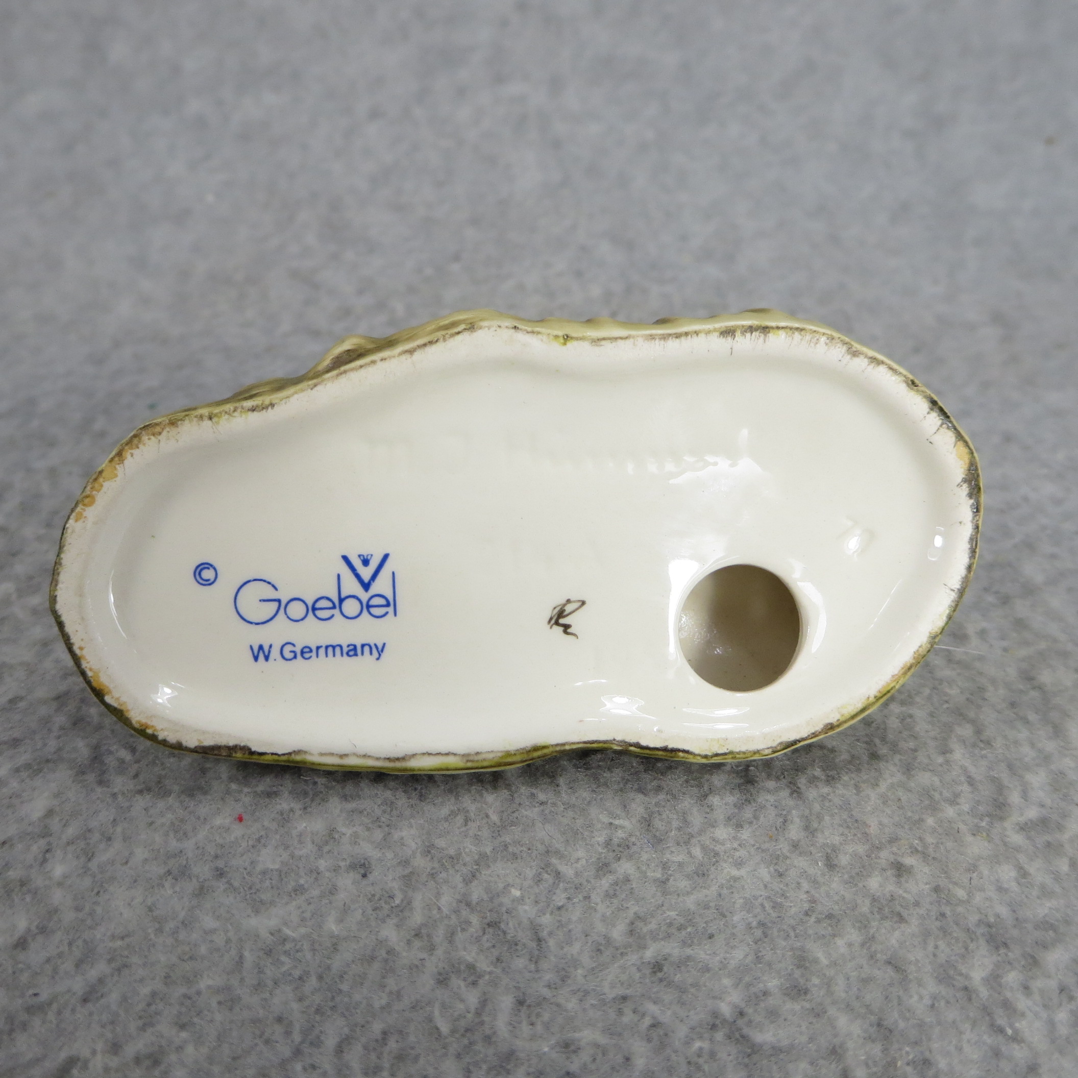 April 05, 2026 - 3-1/2 inches wide. Base is incised 214/A and 1951. Goebel TMK 5 trademark imprinted in blue on bottom of base. Painter hand-initialed in black ink on bottom of base.