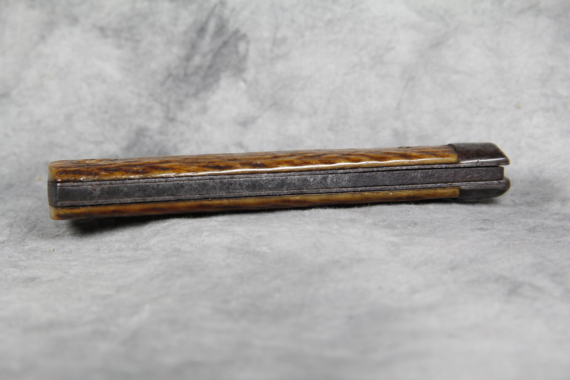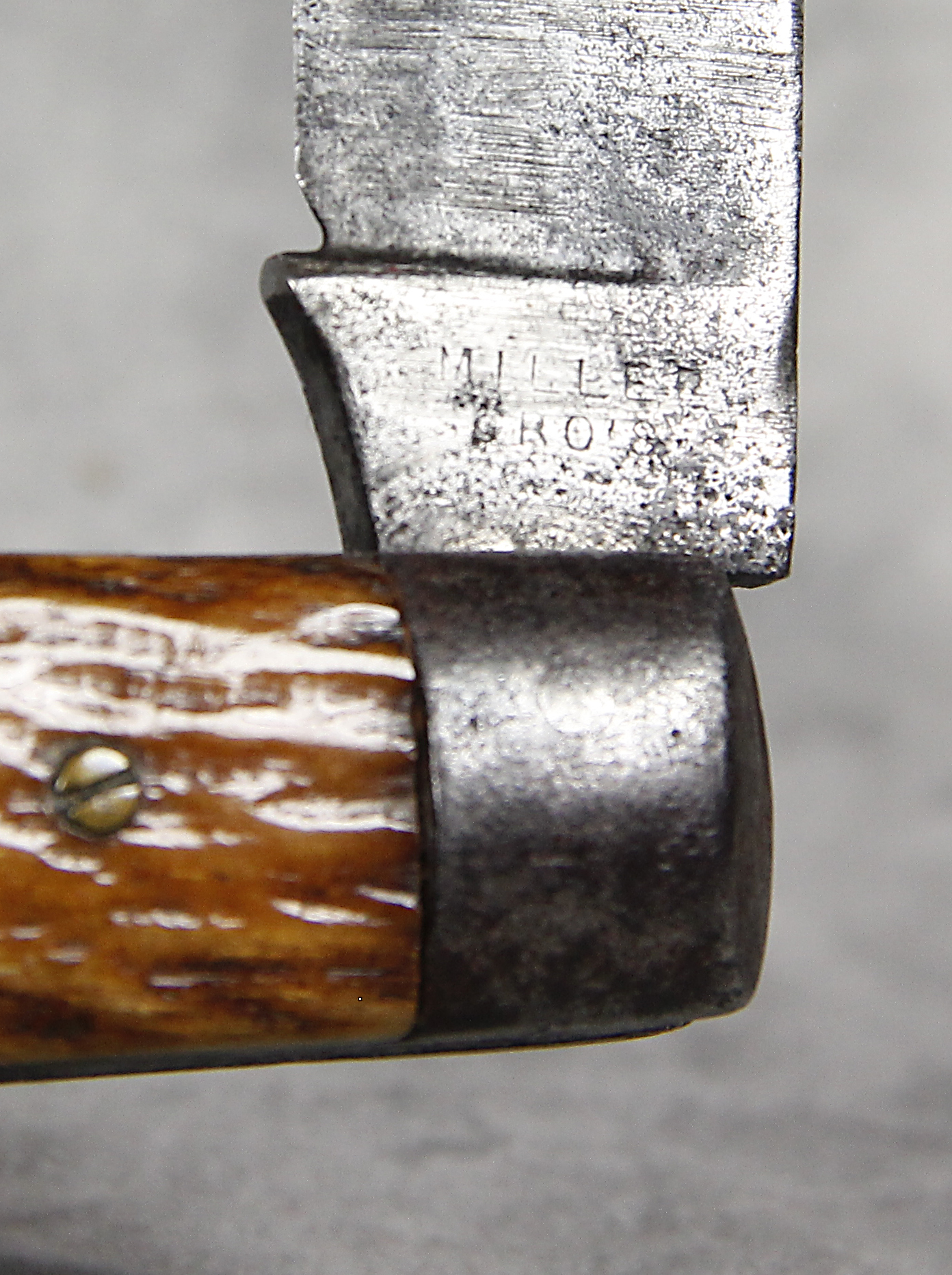 February 23, 2026 - 4-3/4 inches closed. 8-3/8 inches open. "MILLER BRO'S" (worn) tang stamp. Jigged Bone handle.