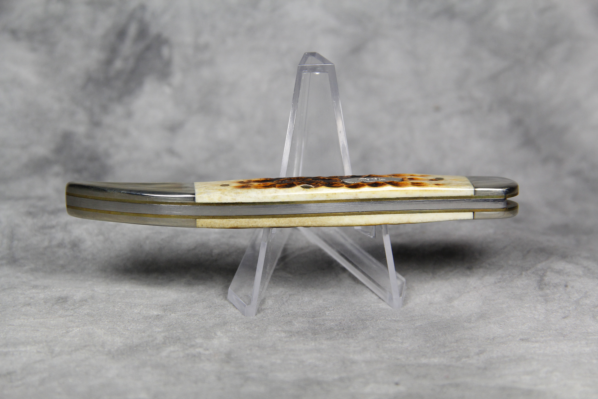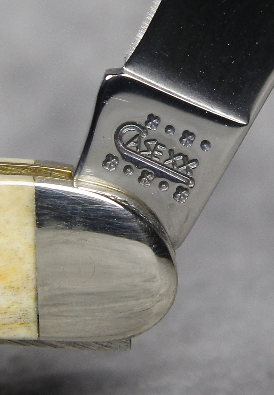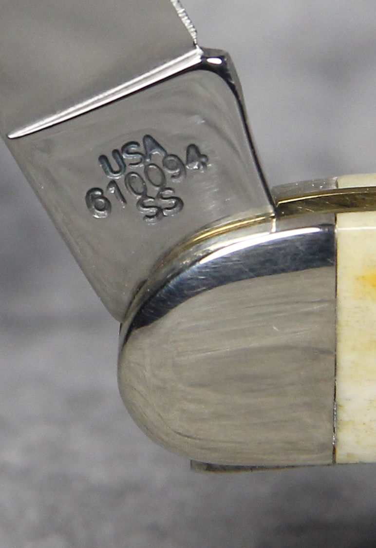 October 26, 2025 - 4-1/8 inches closed. 7-5/8 inches open. Made in USA. " x*x* Case XX x*x*x " (with lightning bolt S) and "USA 610094 SS" tang stamps. Oval 'Long C' Case XX shield. Stainless Steel blade. Jigged Bone handle. Nickel Silver bolsters. Brass liner.